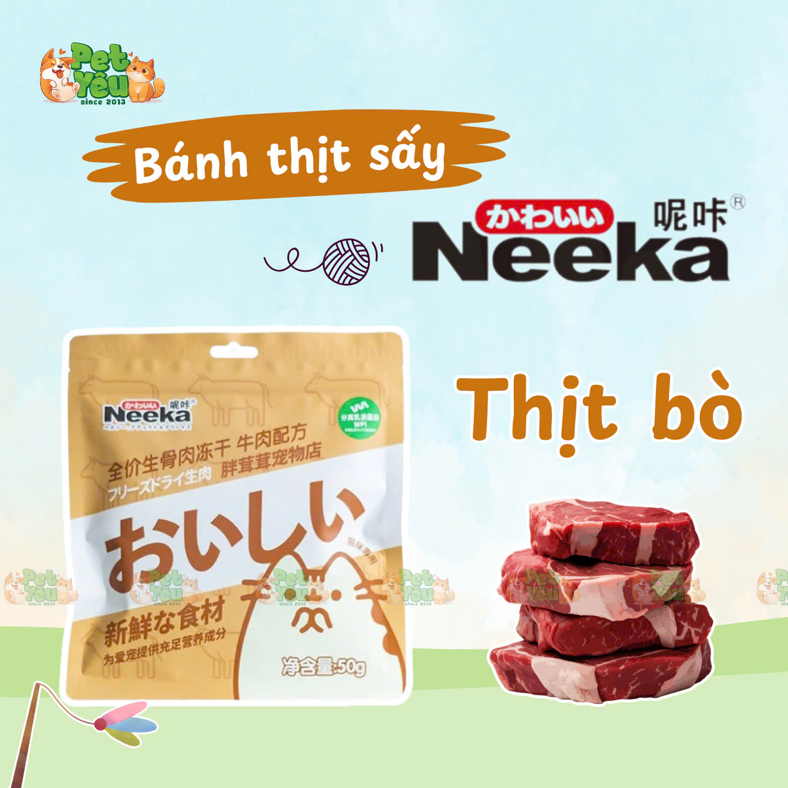 Giao hàng nhanh chóng- Bánh thịt sấy Neeka dành cho mèo - túi 50G