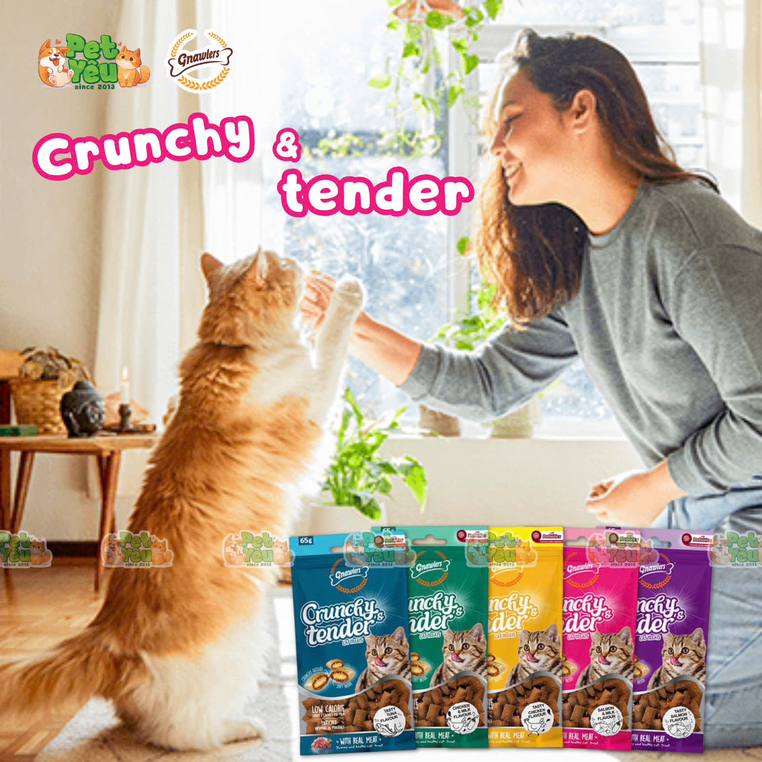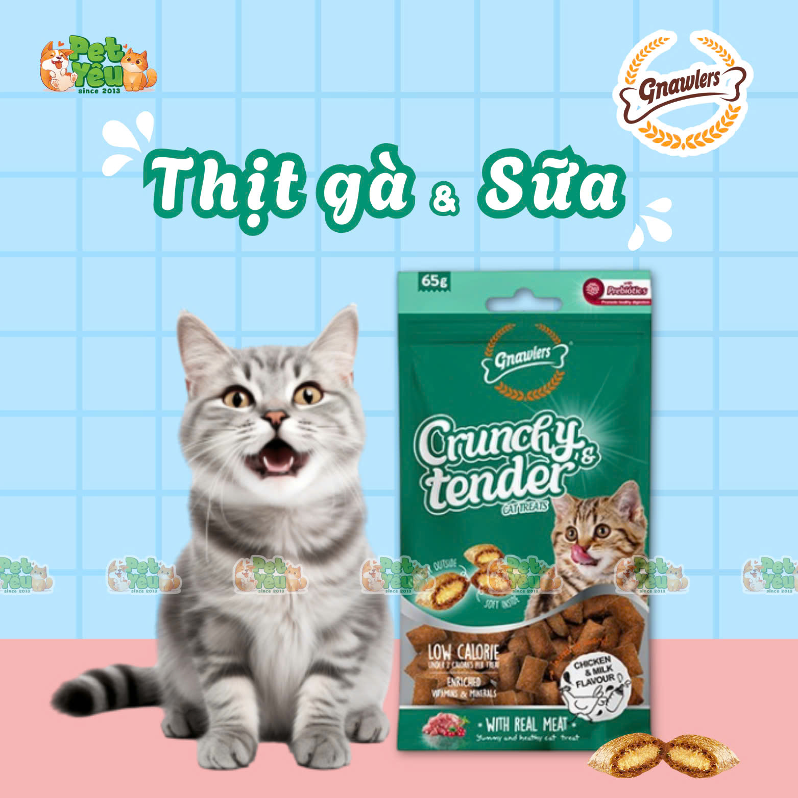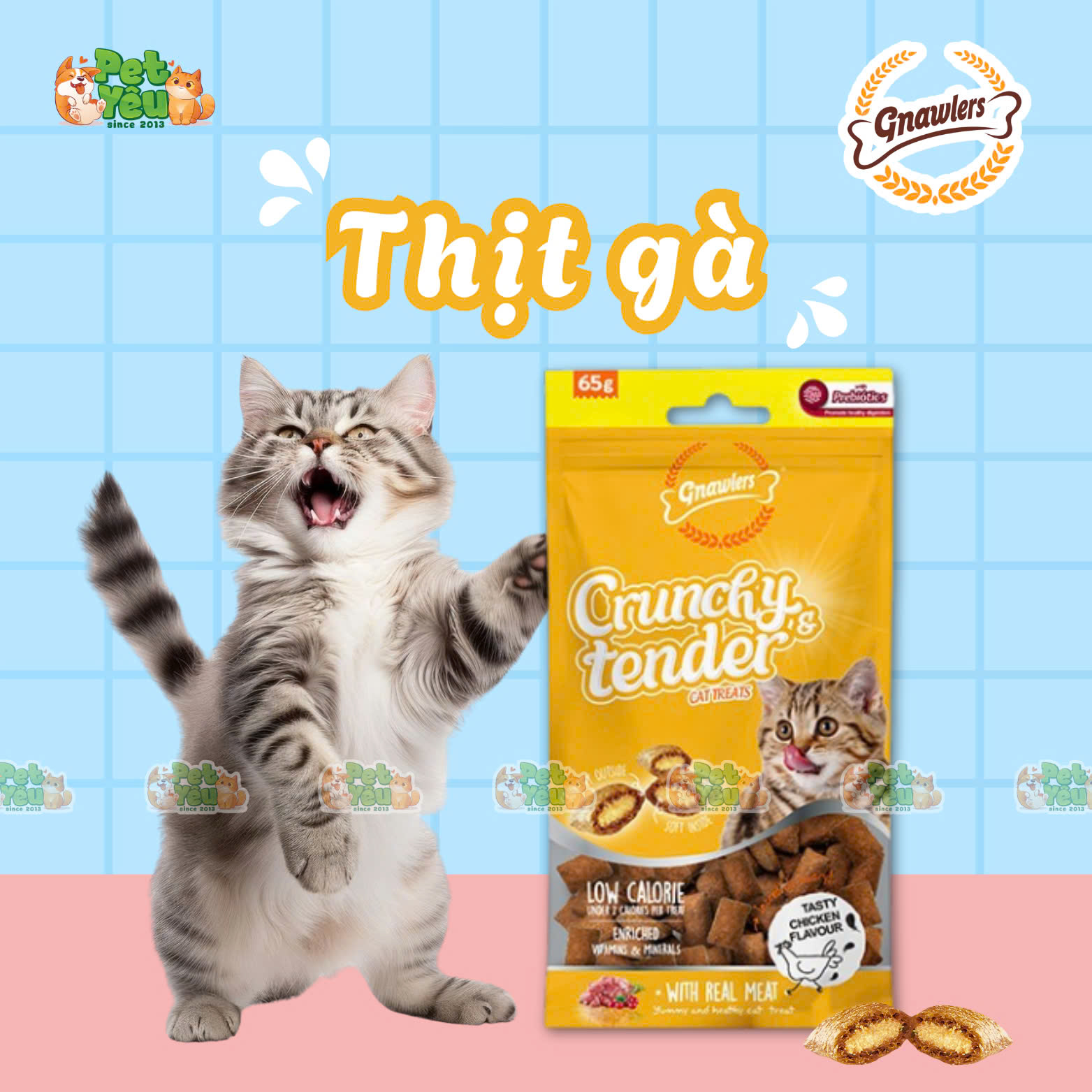 Giao hàng nhanh chóng- Bánh thưởng GNAWLERS Crunchy & Tender dành cho mèo 65g