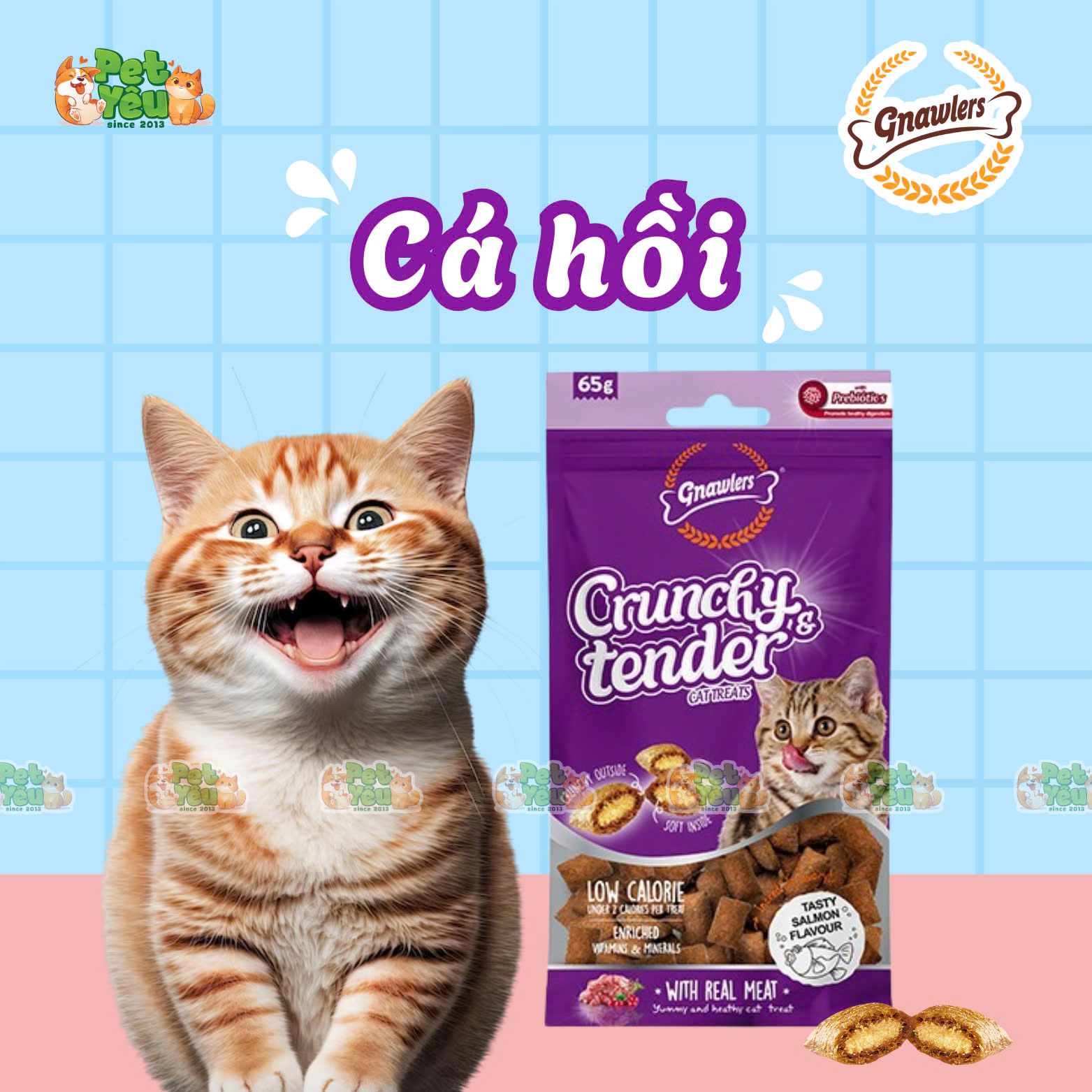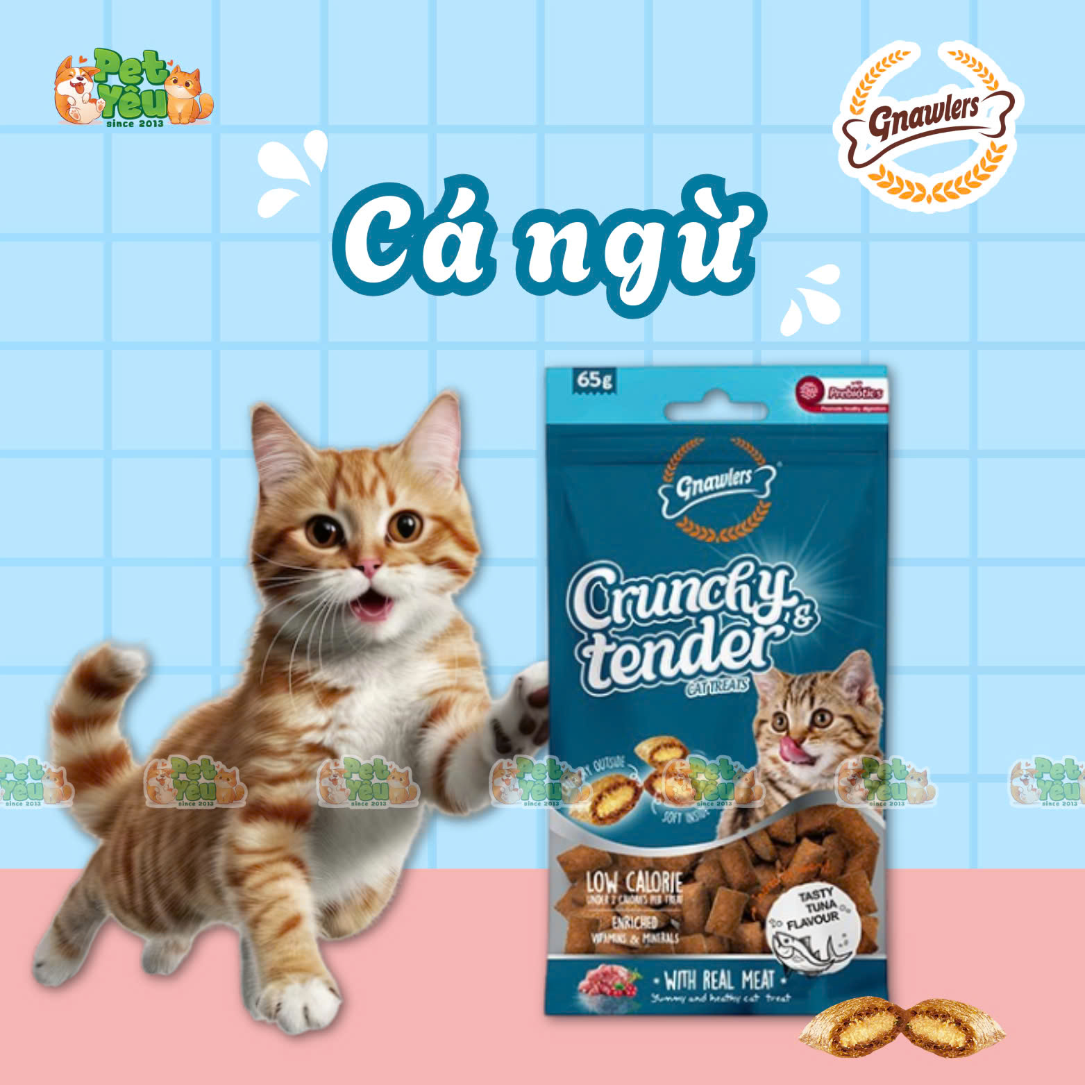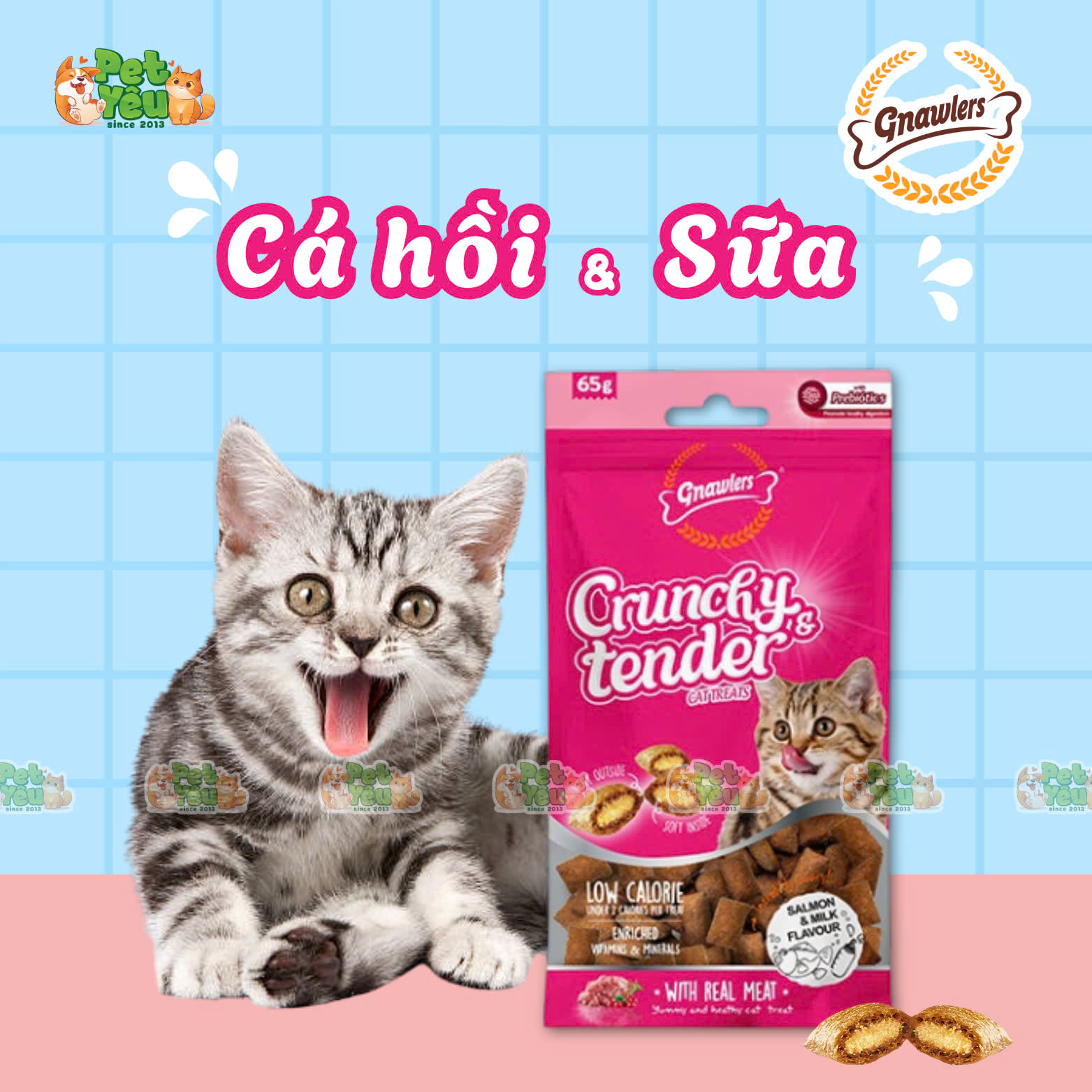 Giao hàng nhanh chóng- Bánh thưởng GNAWLERS Crunchy & Tender dành cho mèo 65g