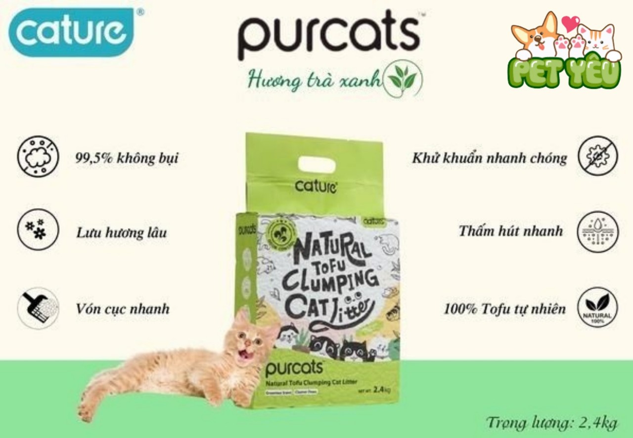 Giao hàng nhanh chóng- Cát vệ sinh cho mèo CATURE TOFU - HƯƠNG TRÀ XANH gói 2.4kg