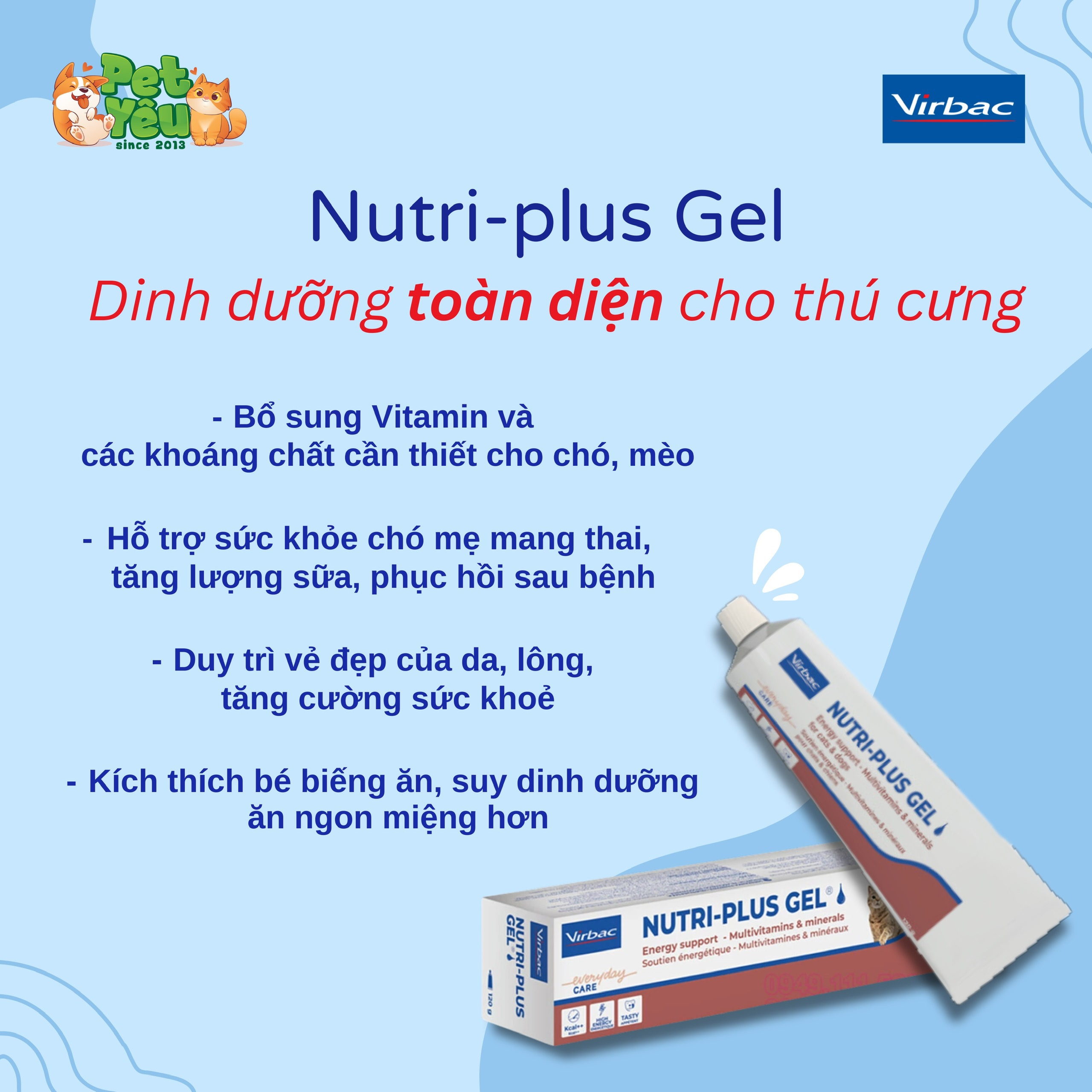 Nutri Gel dinh dưỡng giúp bạn giải quyết các vấn đề khi các bé mèo kén ăn, suy dinh dưỡng, đang mang thai hoặc cần hồi phục sức khỏe sau bệnh