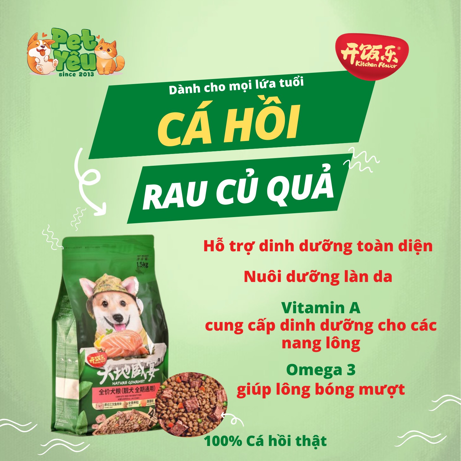 Giao hàng nhanh chóng- Hạt cho chó Kitchen Flavor Nature Gourment dành cho mọi lứa tuổi - Vị Cá Hồi & Rau Củ 1.5kg