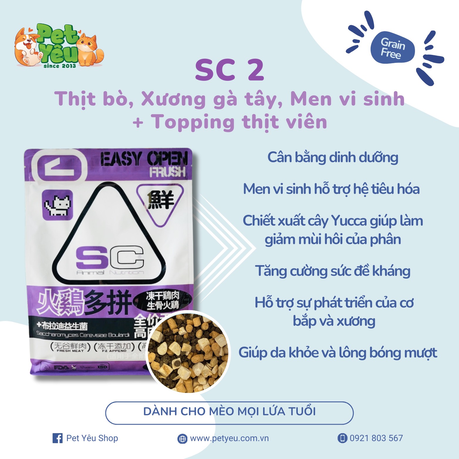 Giao hàng nhanh chóng- Hạt cho mèo SC Animal Nutrition Dòng SC2 - Vị Thịt bò, xương gà tây, men vi sinh + Topping