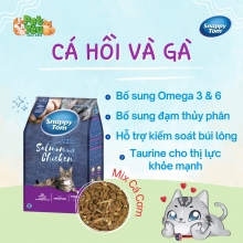 Giao hàng nhanh chóng- Hạt cho mèo Snappy Tom mix cá cơm - vị Cá hồi và gà gói 1.5kg