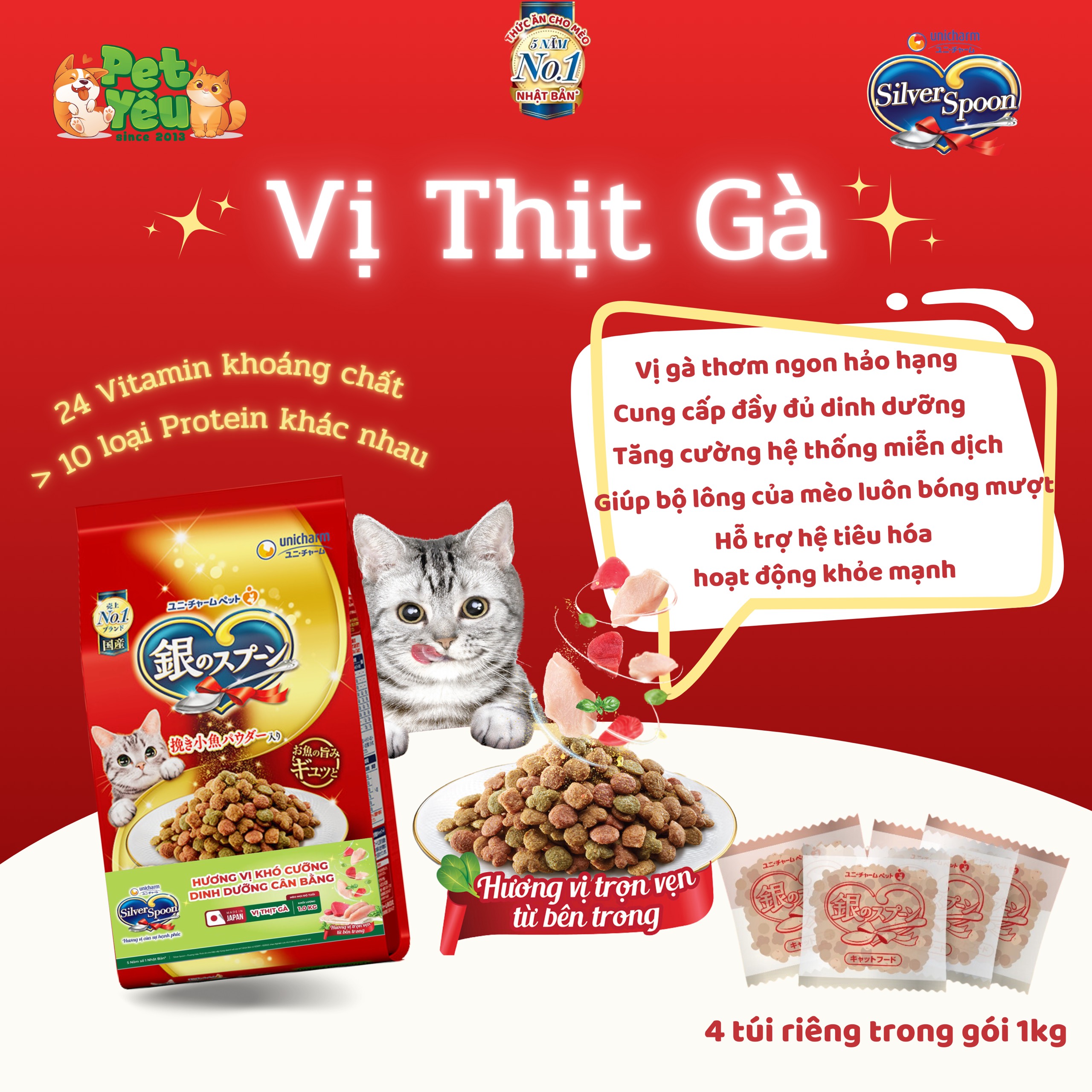 Giao hàng nhanh chóng- Hạt thức ăn cho mèo Silver Spoon - Dòng thơm ngon - Vị Thịt Gà 1KG