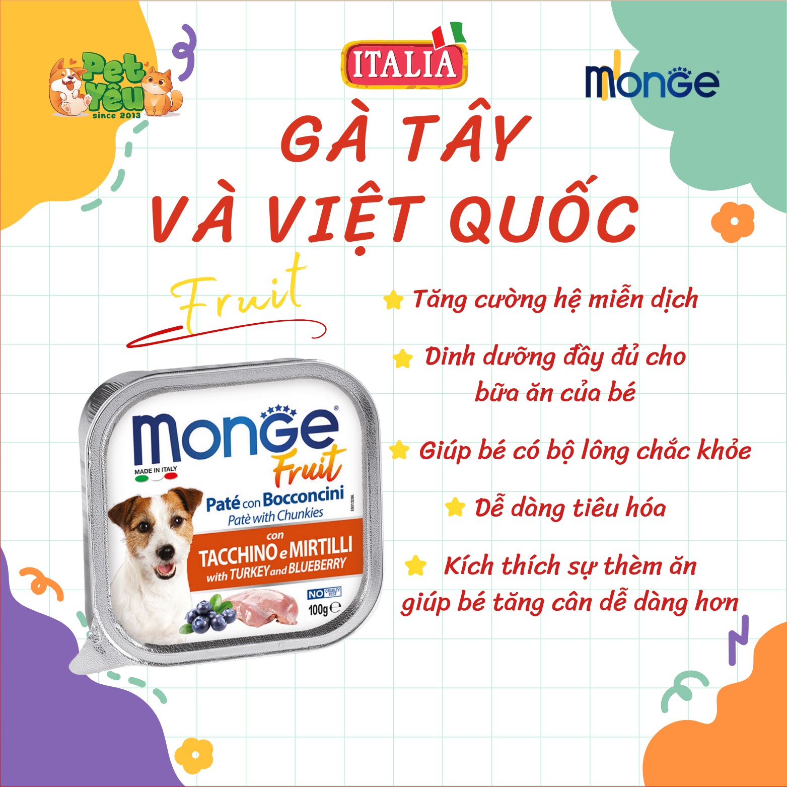 Giao hàng nhanh chóng- Pate cho chó MONGE - vị Gà Tây & Việt Quất 100g