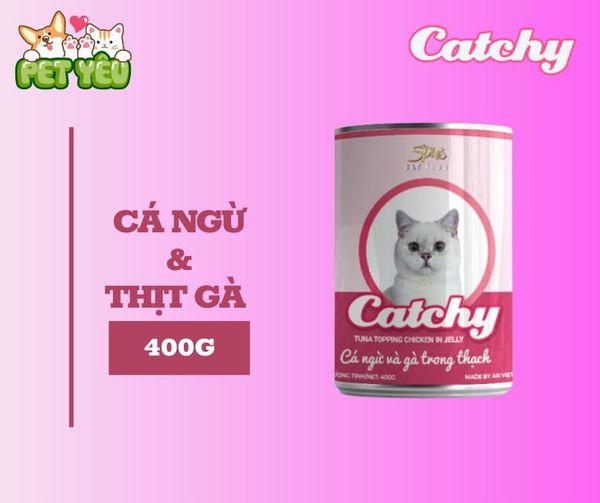 Giao hàng nhanh chóng- Pate cho mèo CATCHY lon 400gr - vị cá ngừ và thịt gà trong thạch