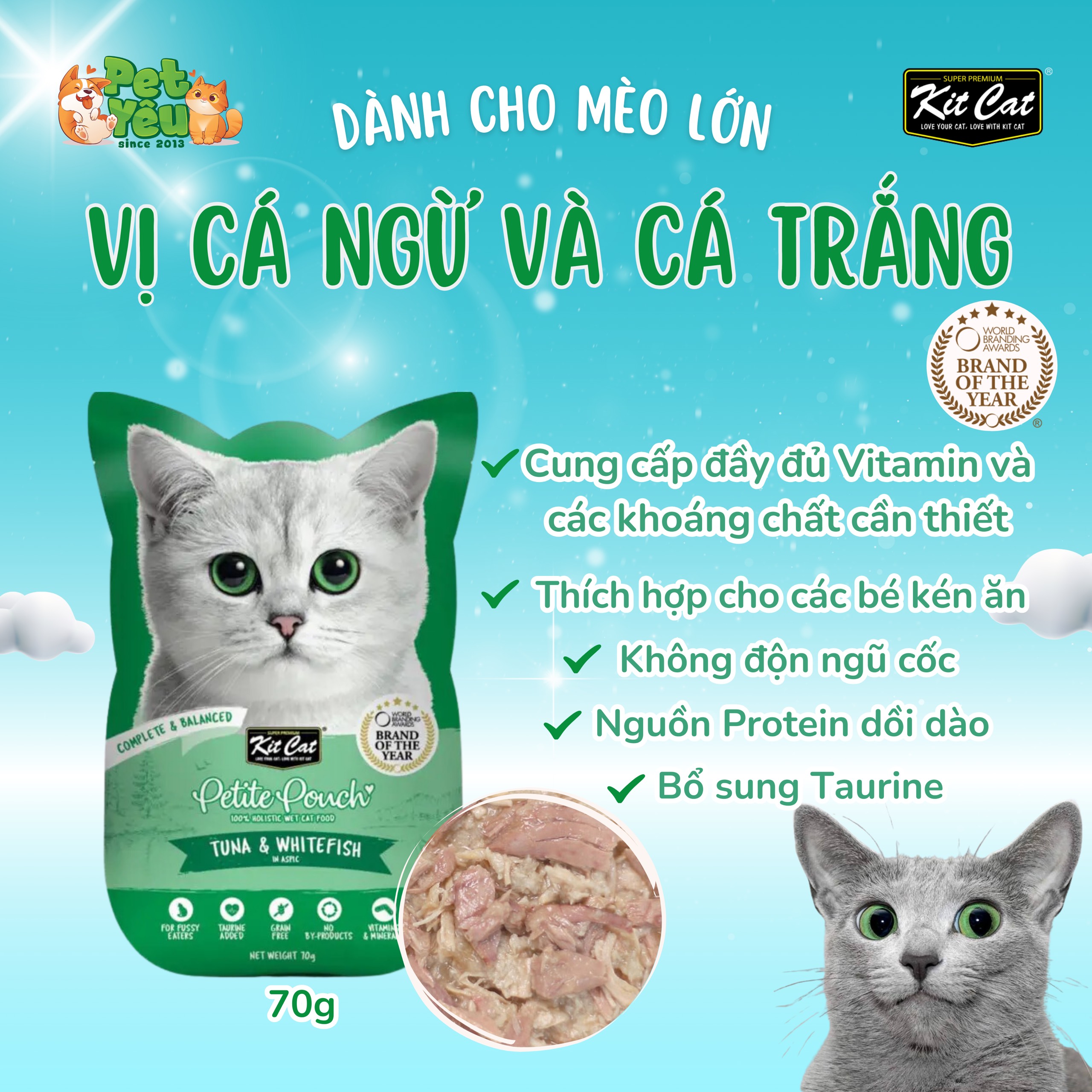 Giao hàng nhanh chóng- Pate cho mèo - KITCAT Petite Pouch vị Cá Ngừ & Cá Trắng 70g