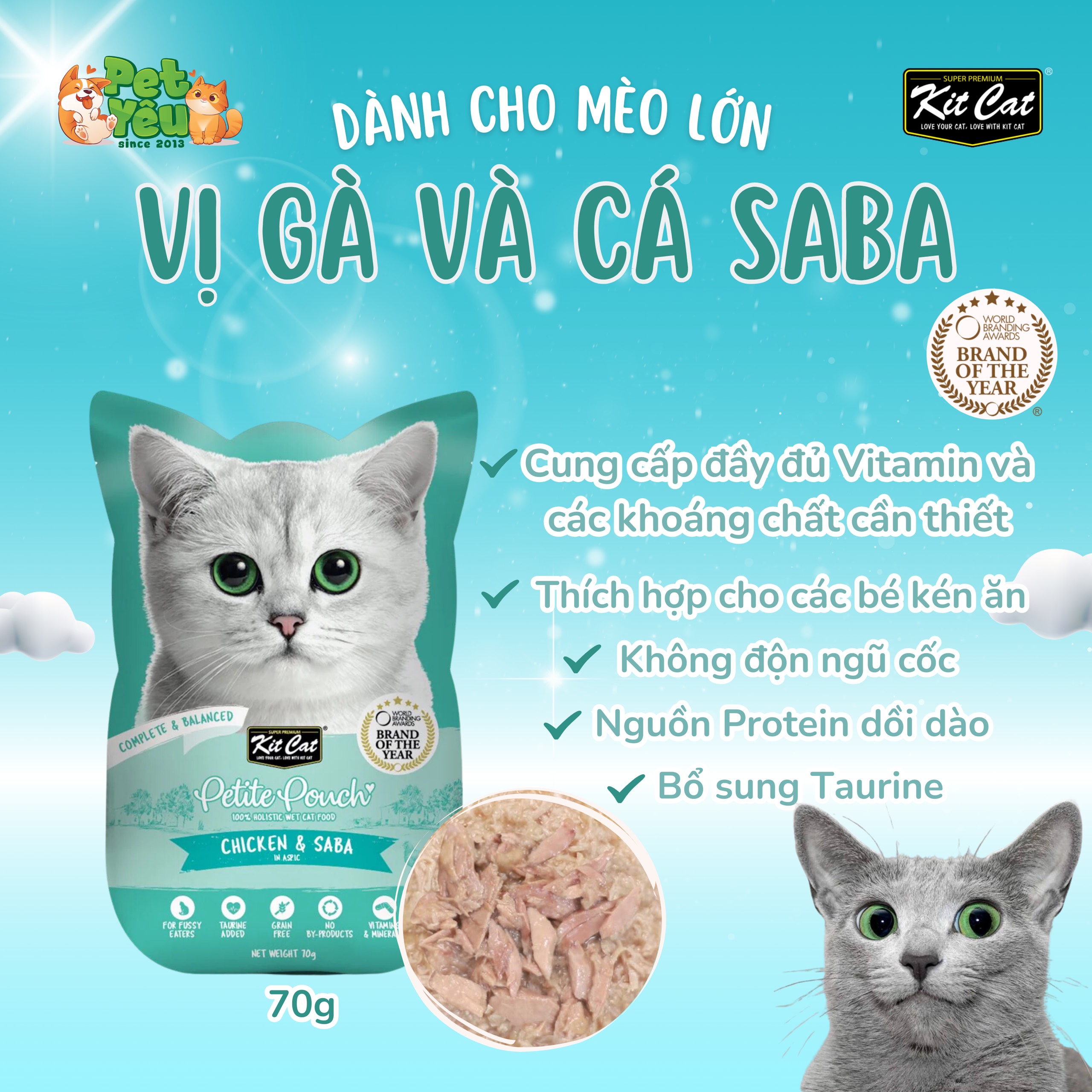 Giao hàng nhanh chóng- Pate cho mèo - KITCAT Petite Pouch vị Thịt gà & Cá SaBa 70g