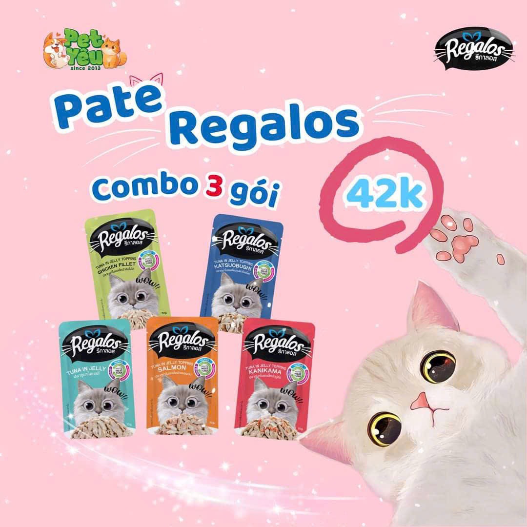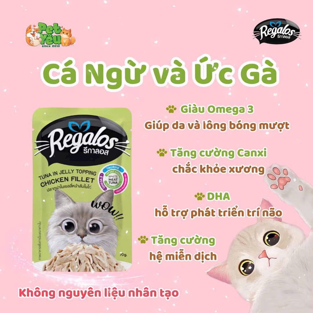 Giao hàng nhanh chóng- Pate cho mèo REGALOS - vị Cá Ngừ & Ức Gà 70g