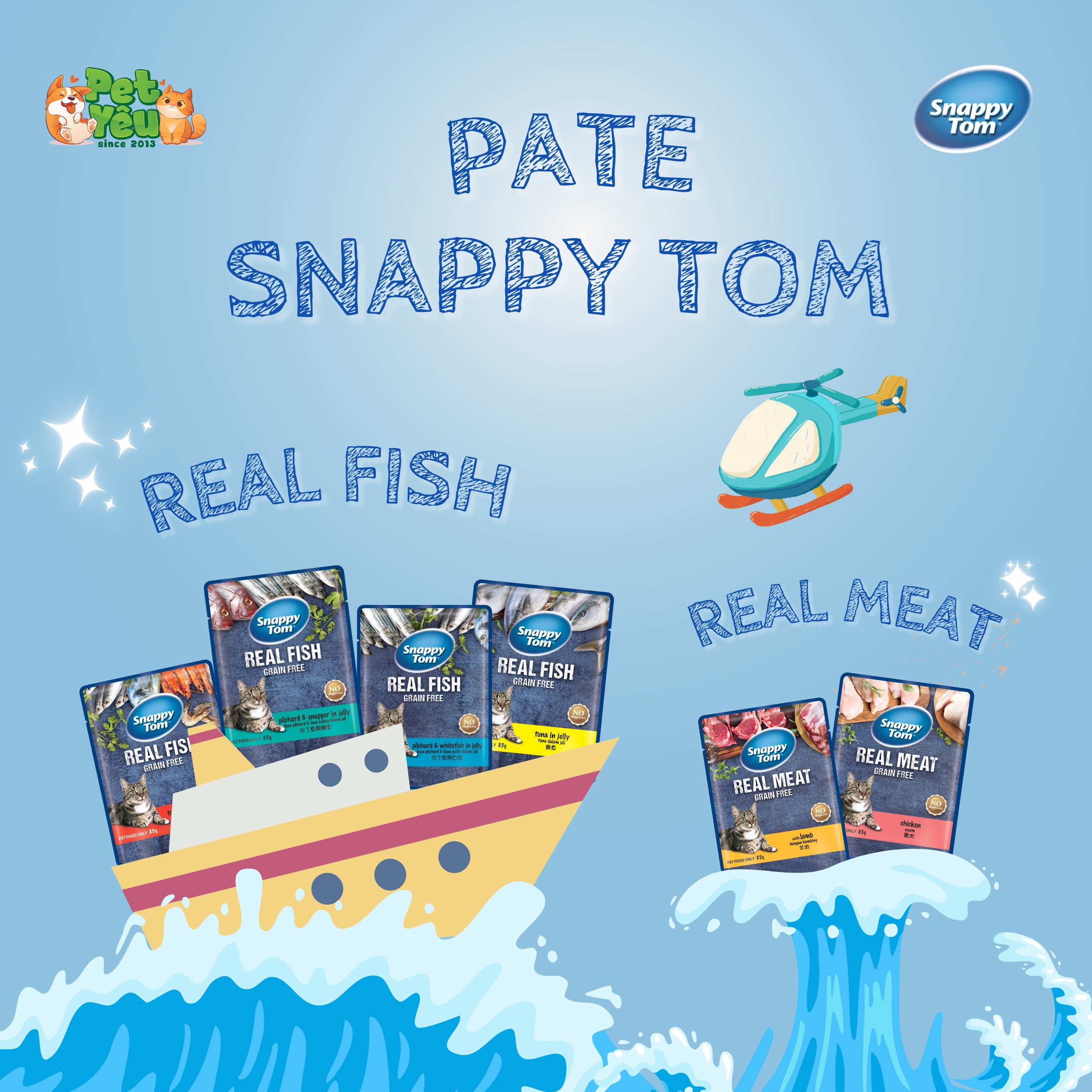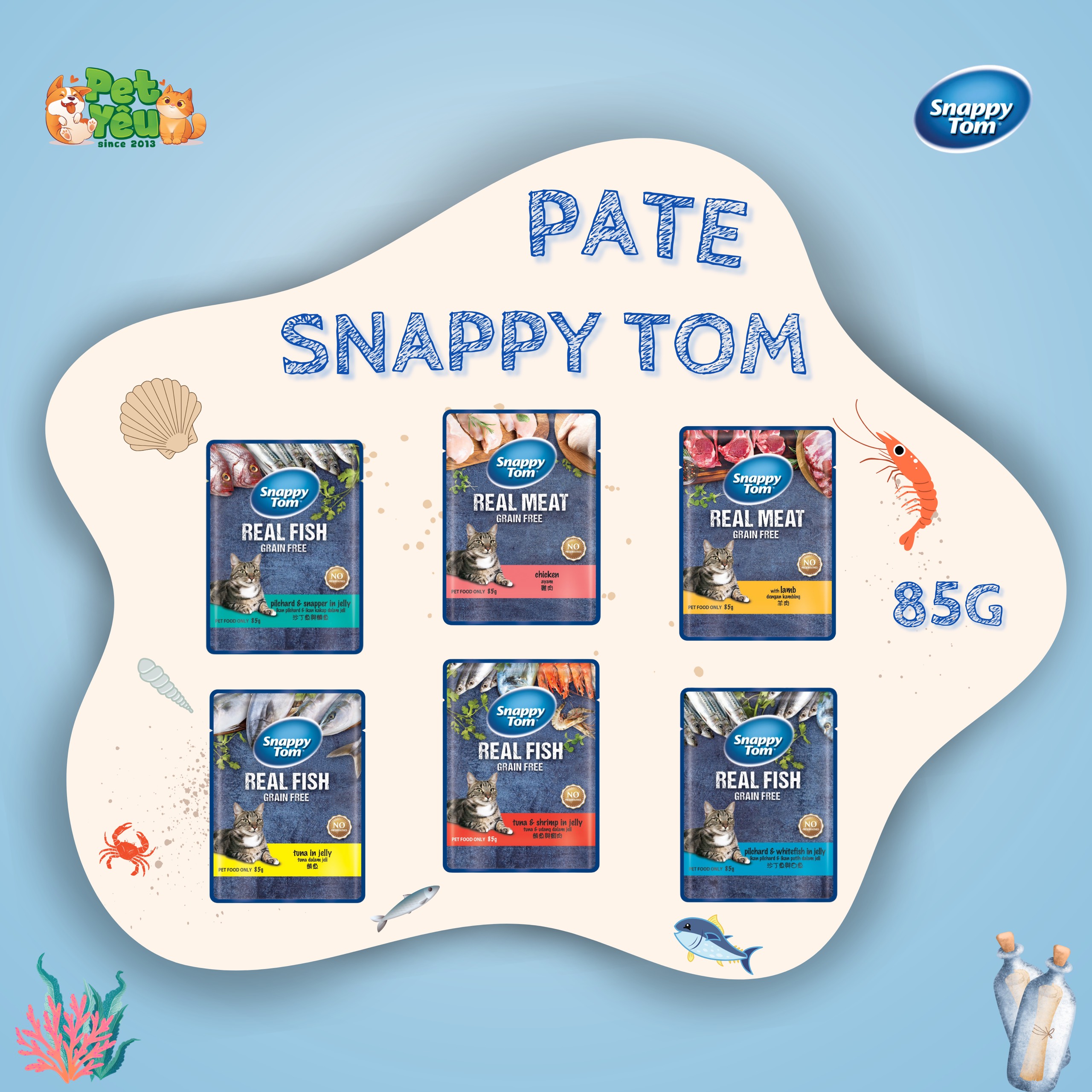 Giao hàng nhanh chóng- Pate cho mèo - SNAPPY TOM REAL FISH vị Cá Ngừ & Tôm 85g
