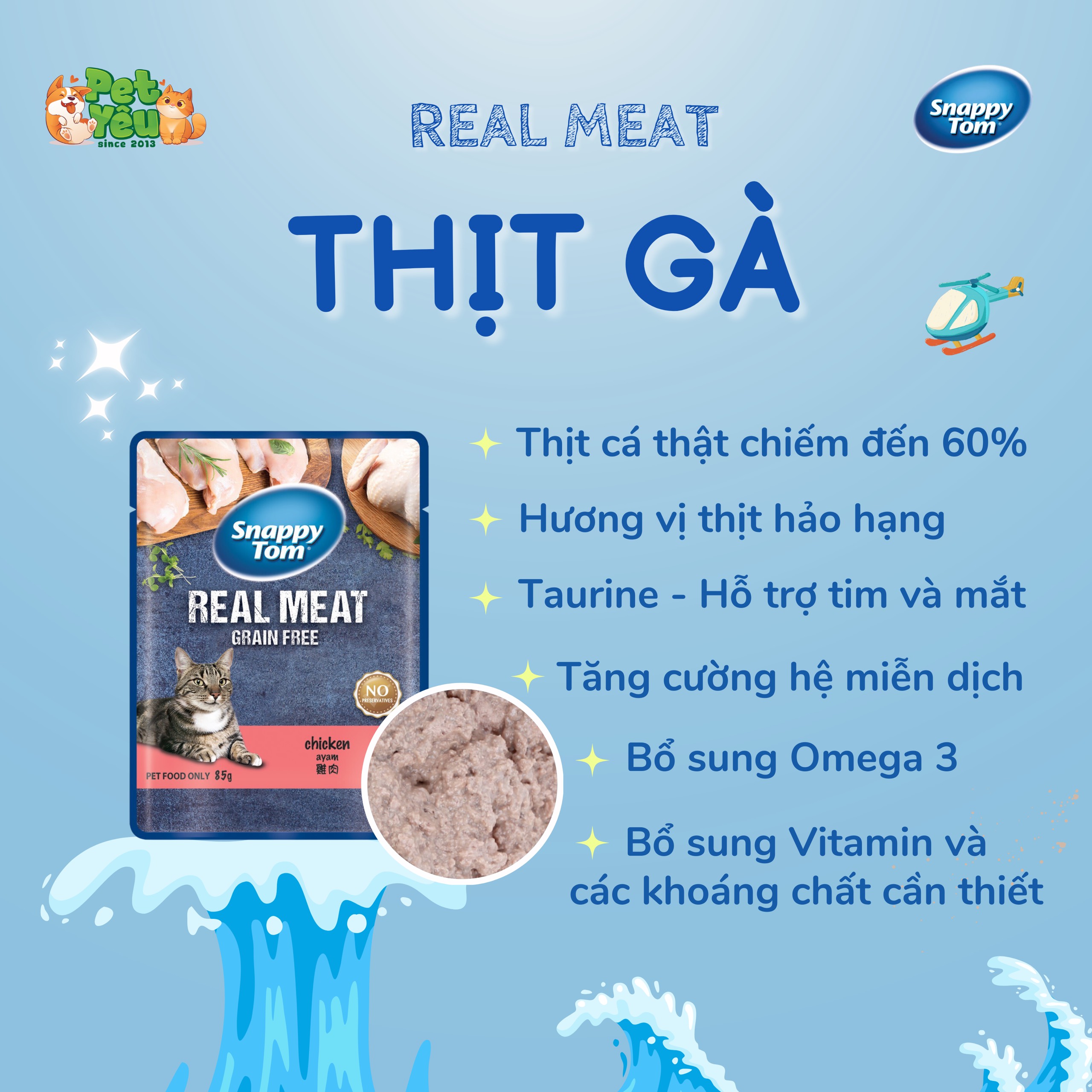 Giao hàng nhanh chóng- Pate cho mèo - SNAPPY TOM REAL MEAT vị Thịt Gà 85g