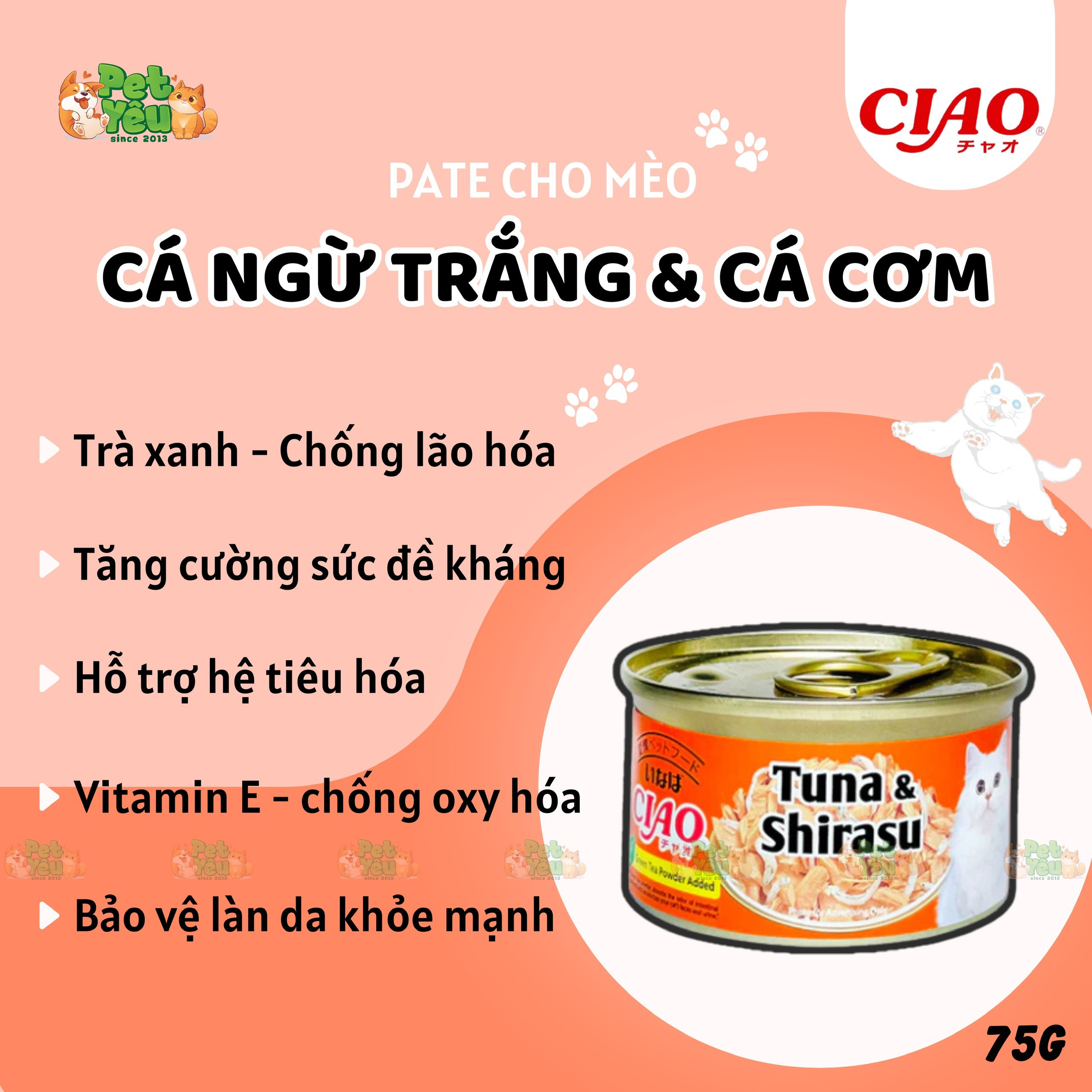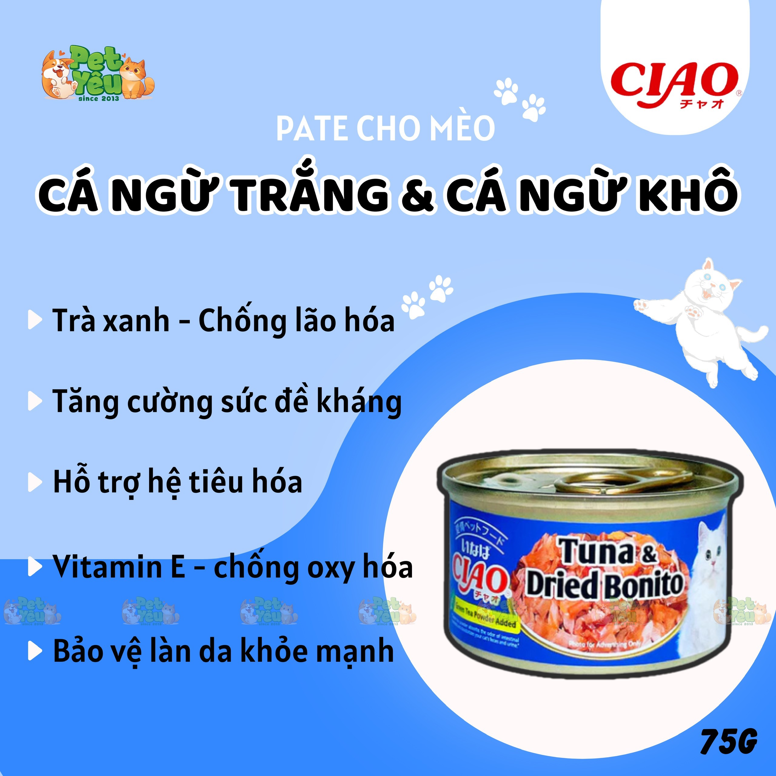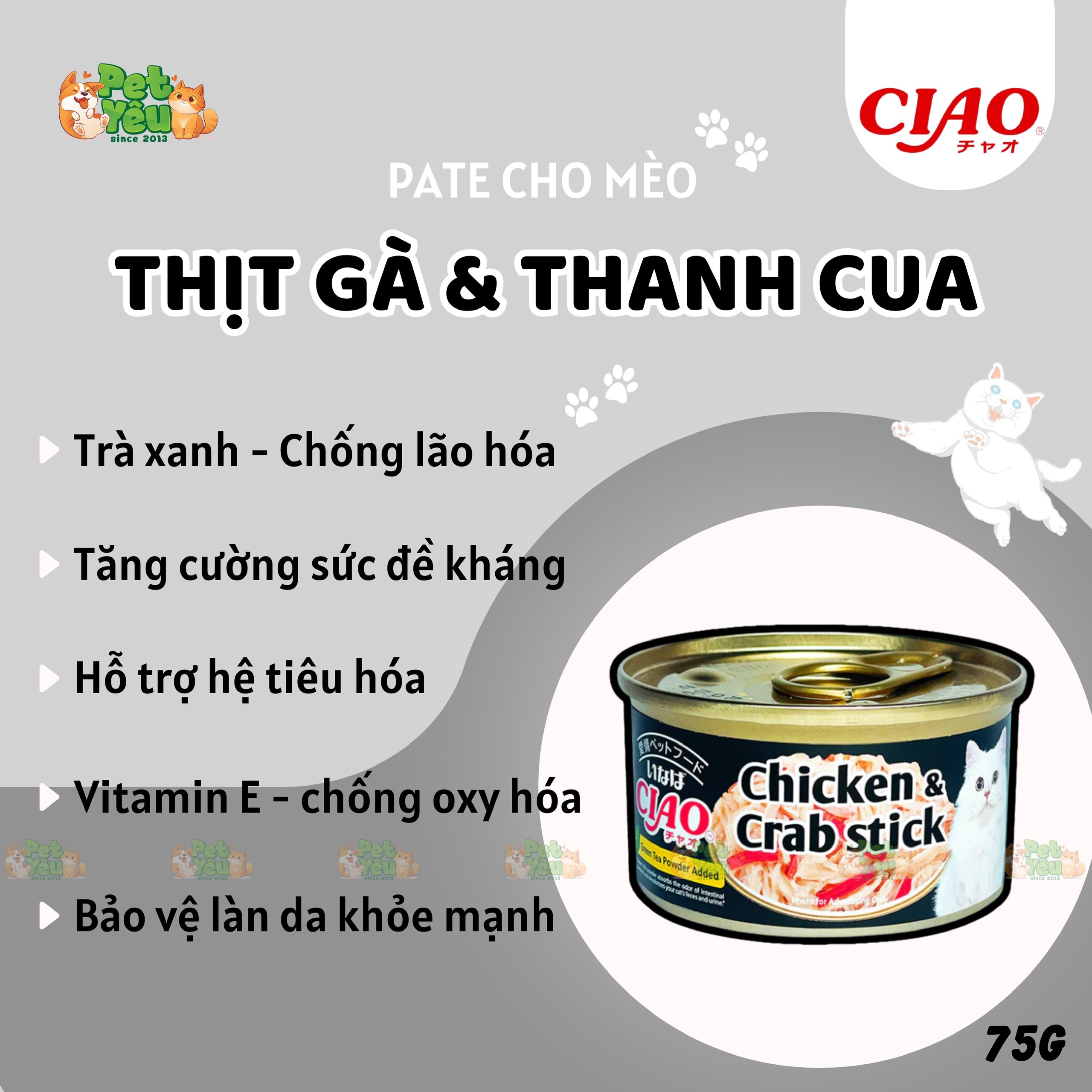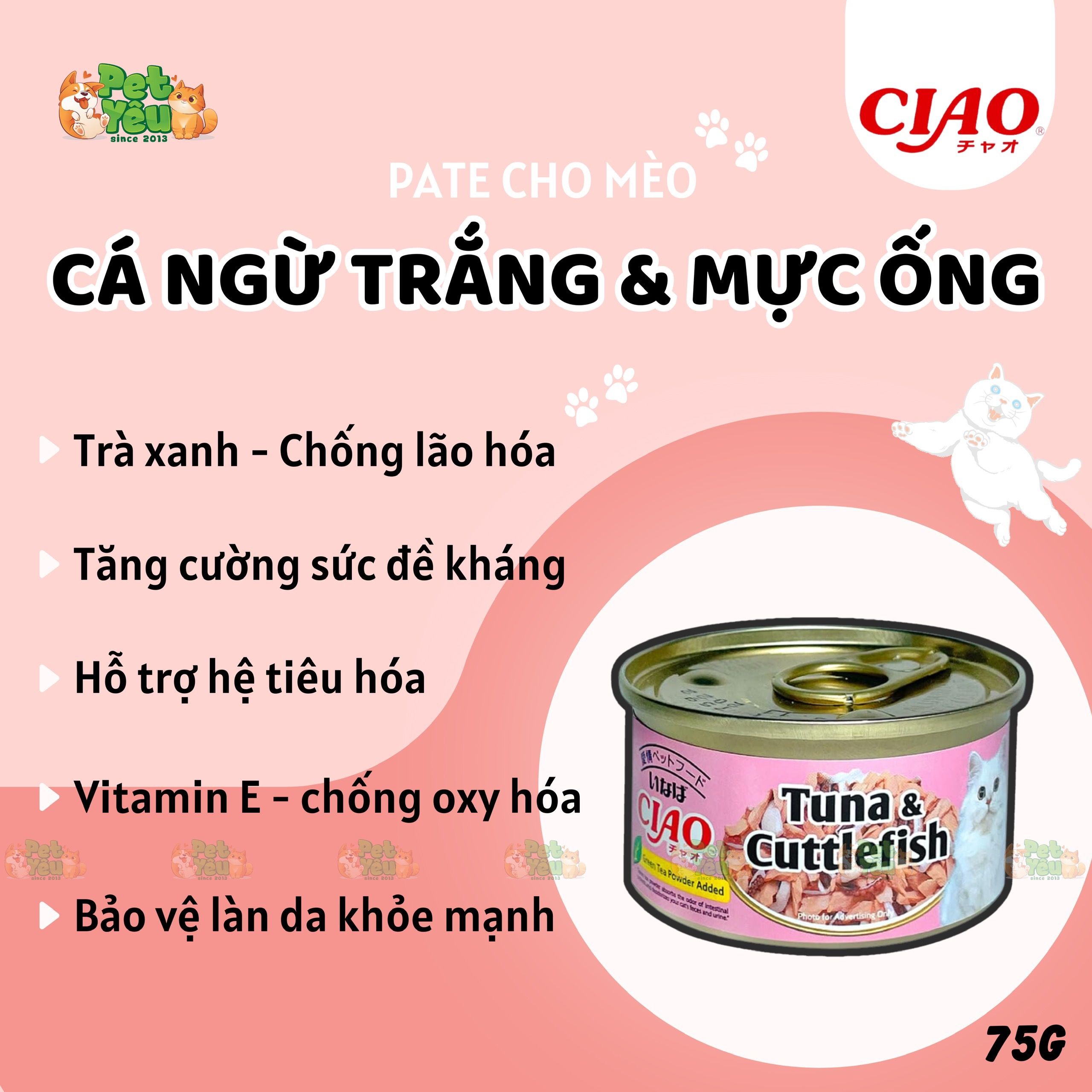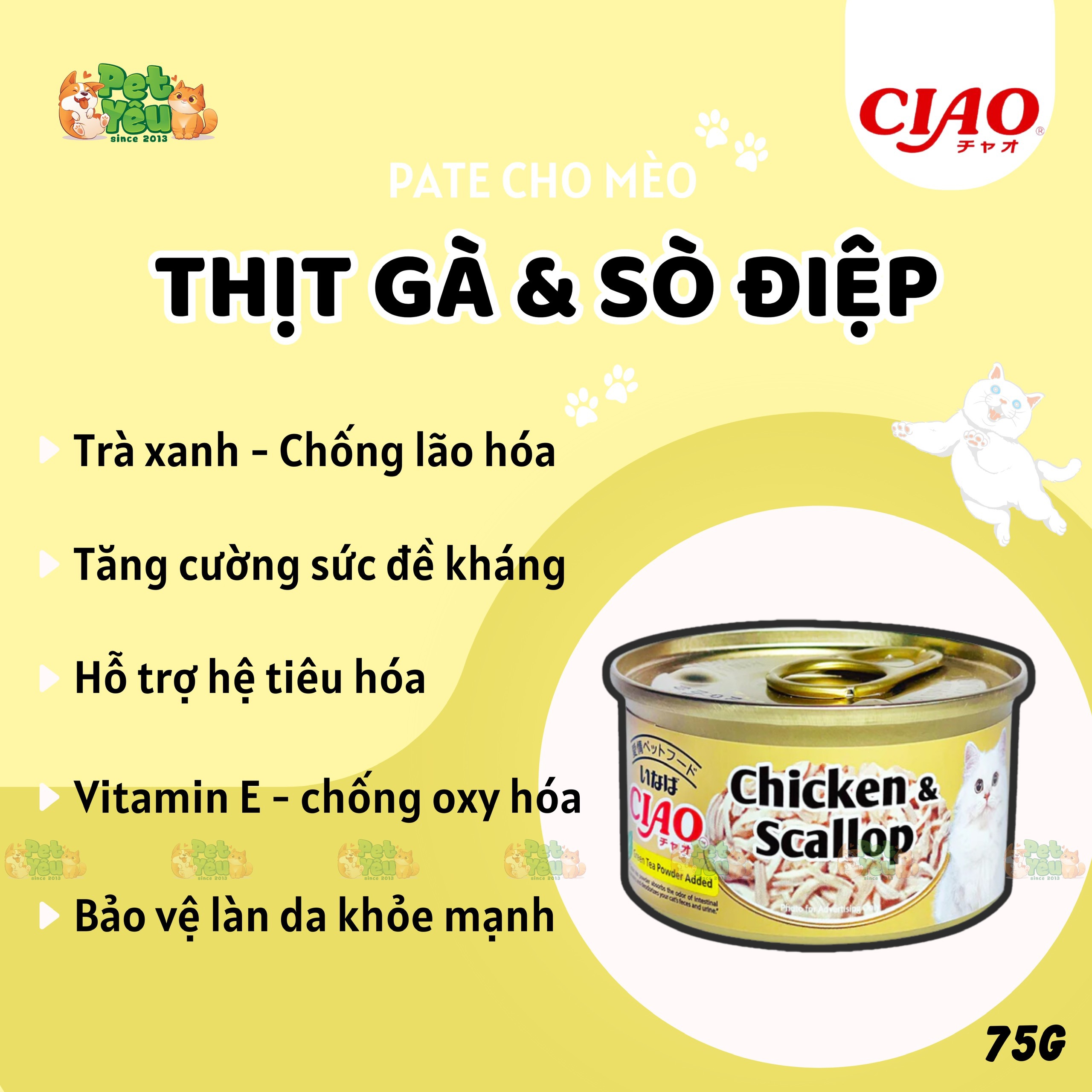Giao hàng nhanh chóng- Pate CIAO dành cho mèo - lon 75g