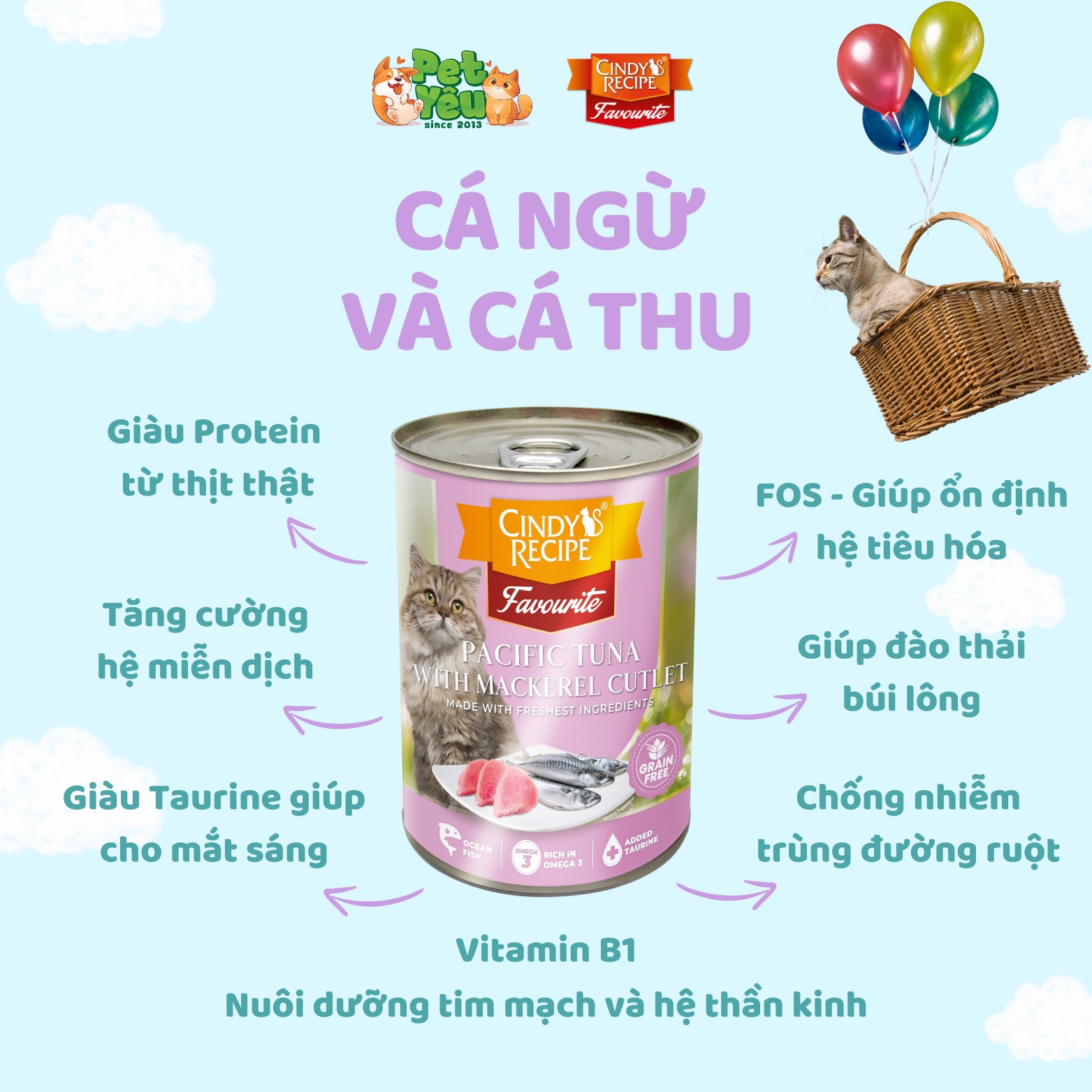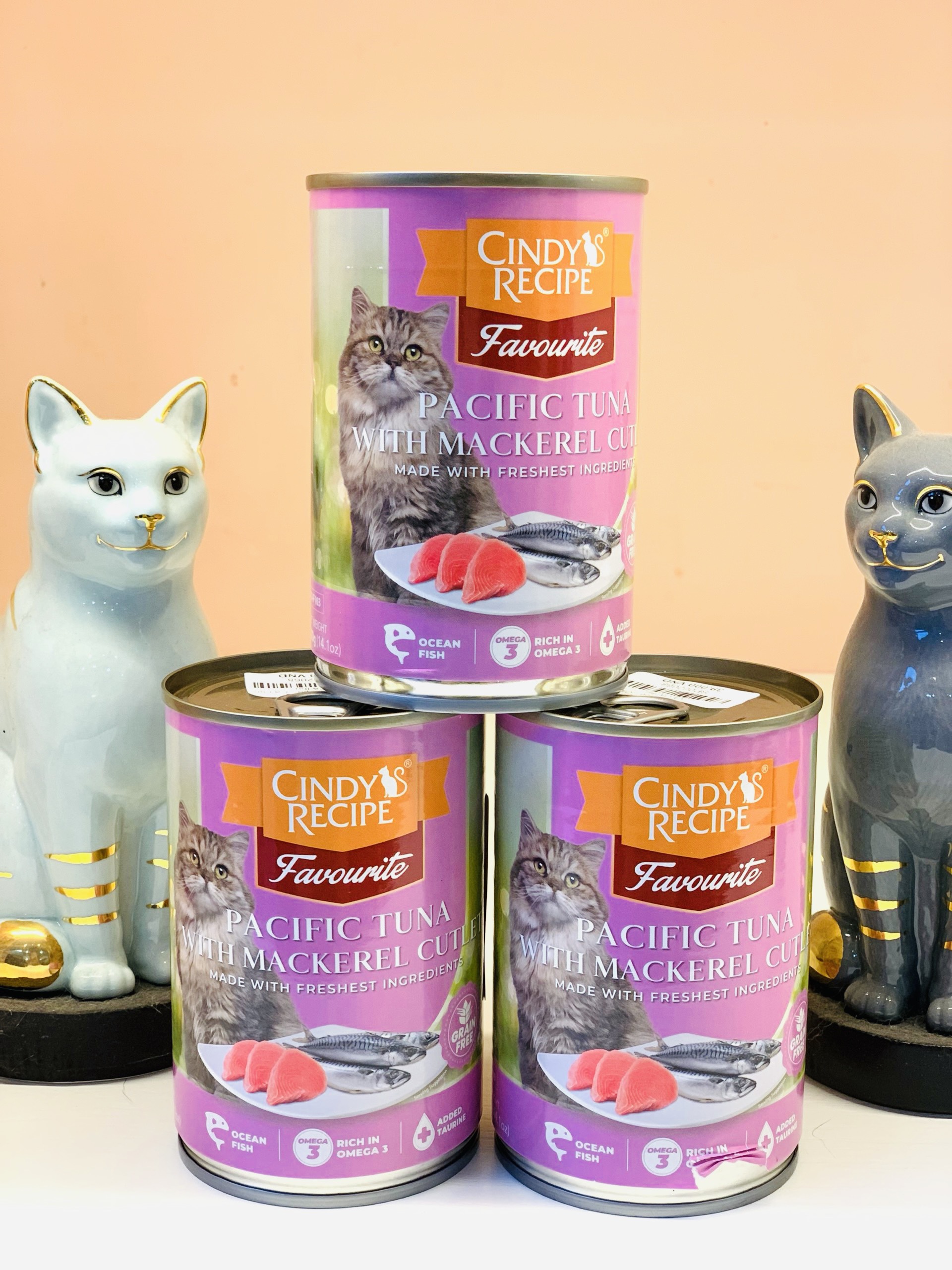Giao hàng nhanh chóng- Pate Cindy Recipe Favourite - Vị Cá Ngừ và Cá Thu dành cho mèo trưởng thành