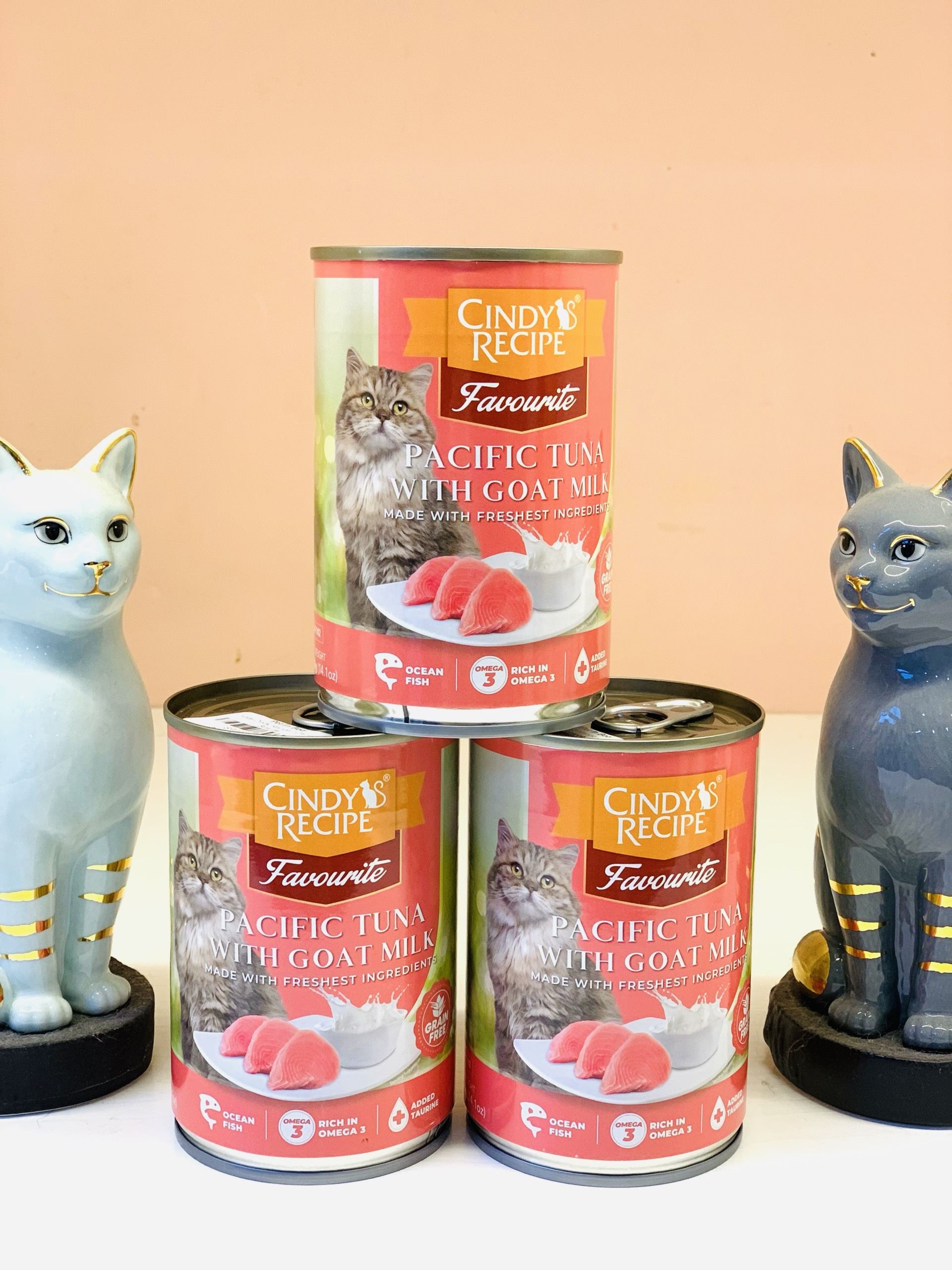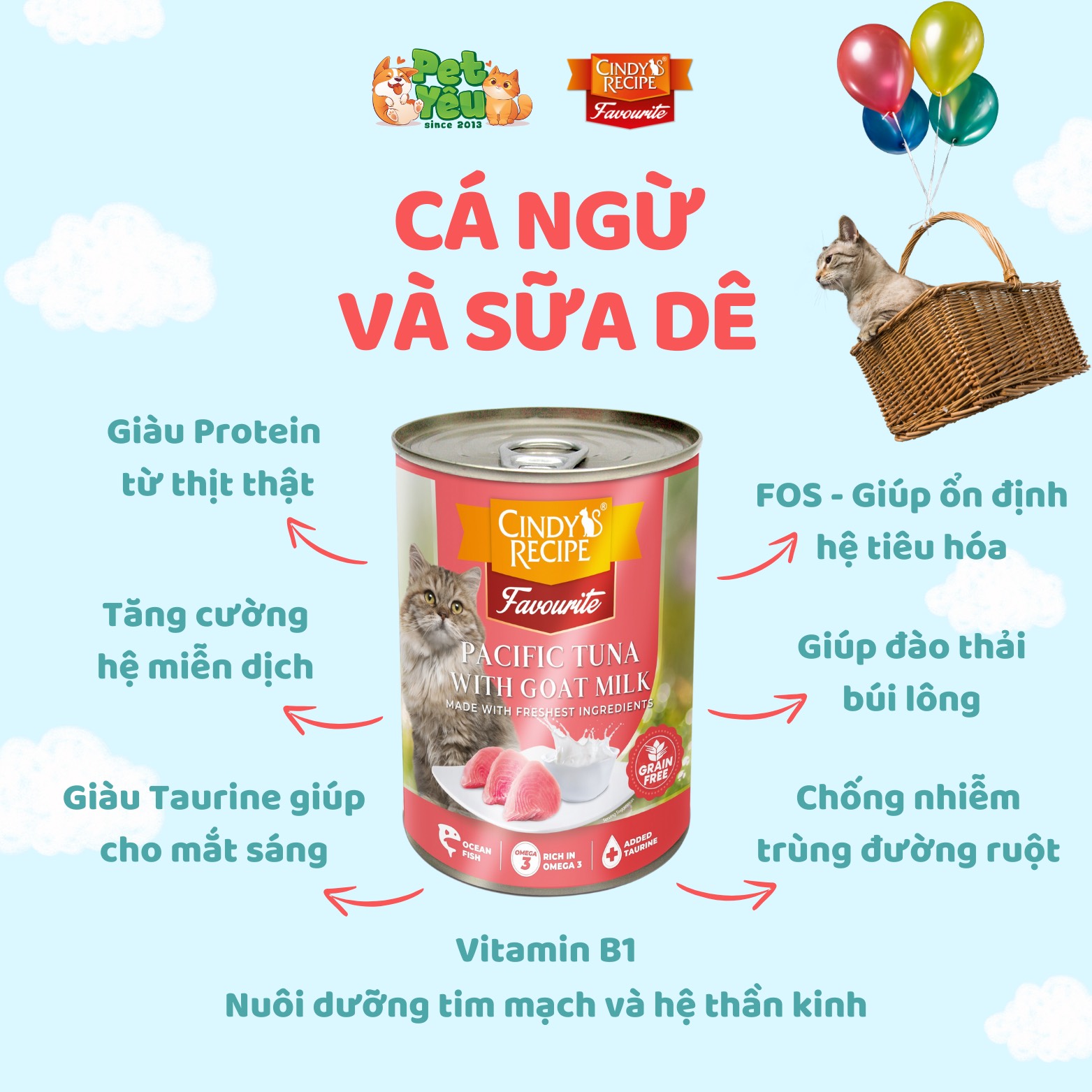 Giao hàng nhanh chóng- Pate Cindy Recipe Favourite - Vị Cá Ngừ và Sữa Dê dành cho mèo trưởng thành