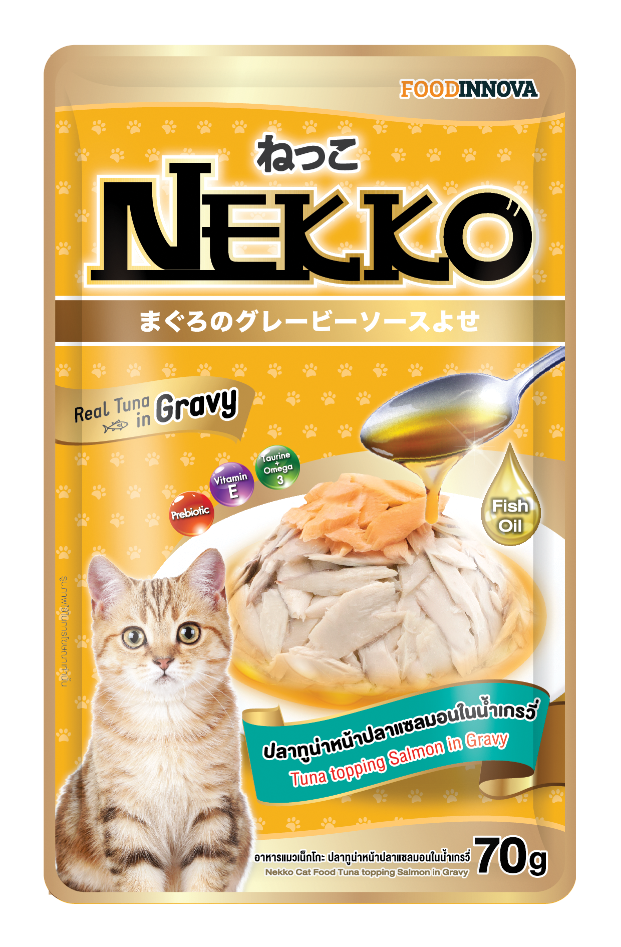 • Pate gravy nekko vị cá ngừ kèm topping cá hồi cho mèo gói 70gr