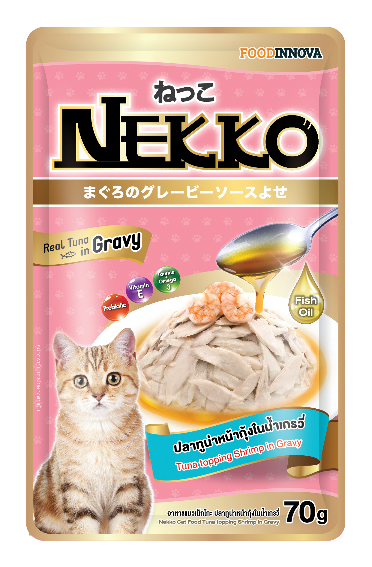 • Pate gravy nekko vị cá ngừ kèm topping tôm cho mèo gói 70gr