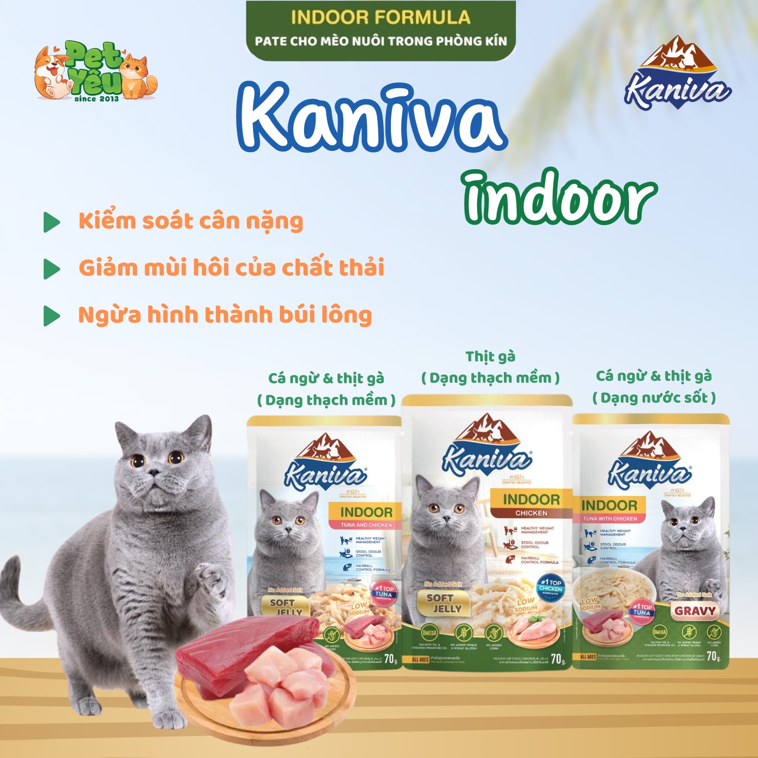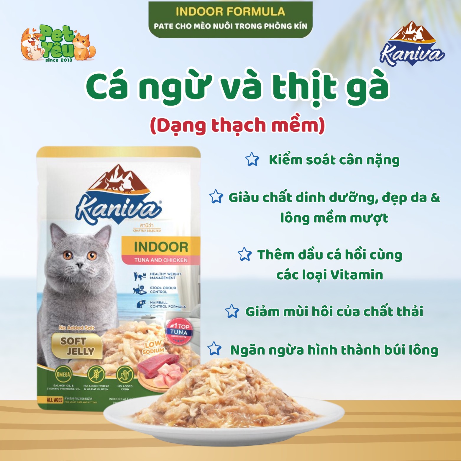 Giao hàng nhanh chóng- Pate Kaniva Indoor Soft Jelly - Vị Cá ngừ & thịt gà 70g