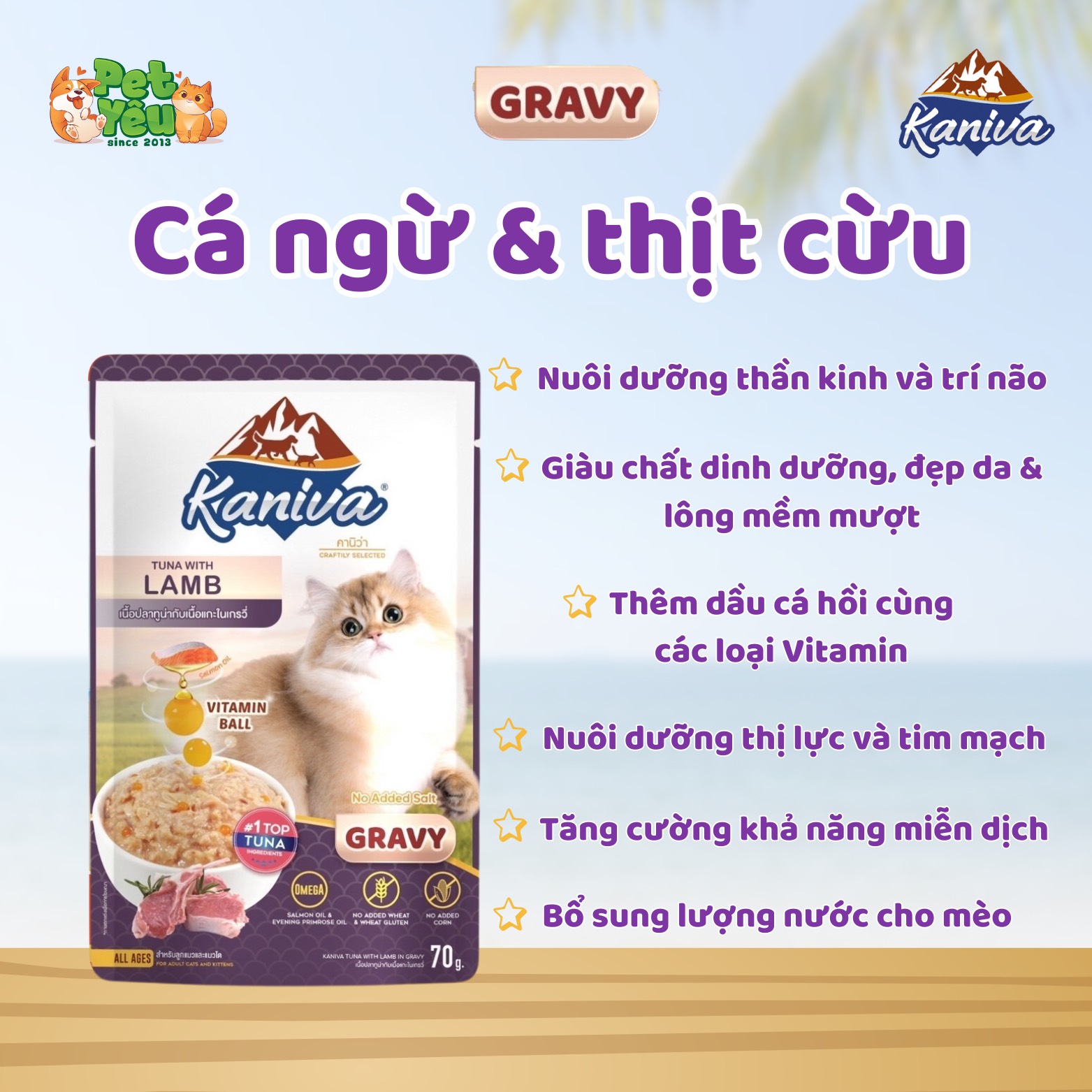 Giao hàng nhanh chóng- Pate Kaniva Vitamin Ball Gravy - Vị Cá ngừ & thịt cừu 70g