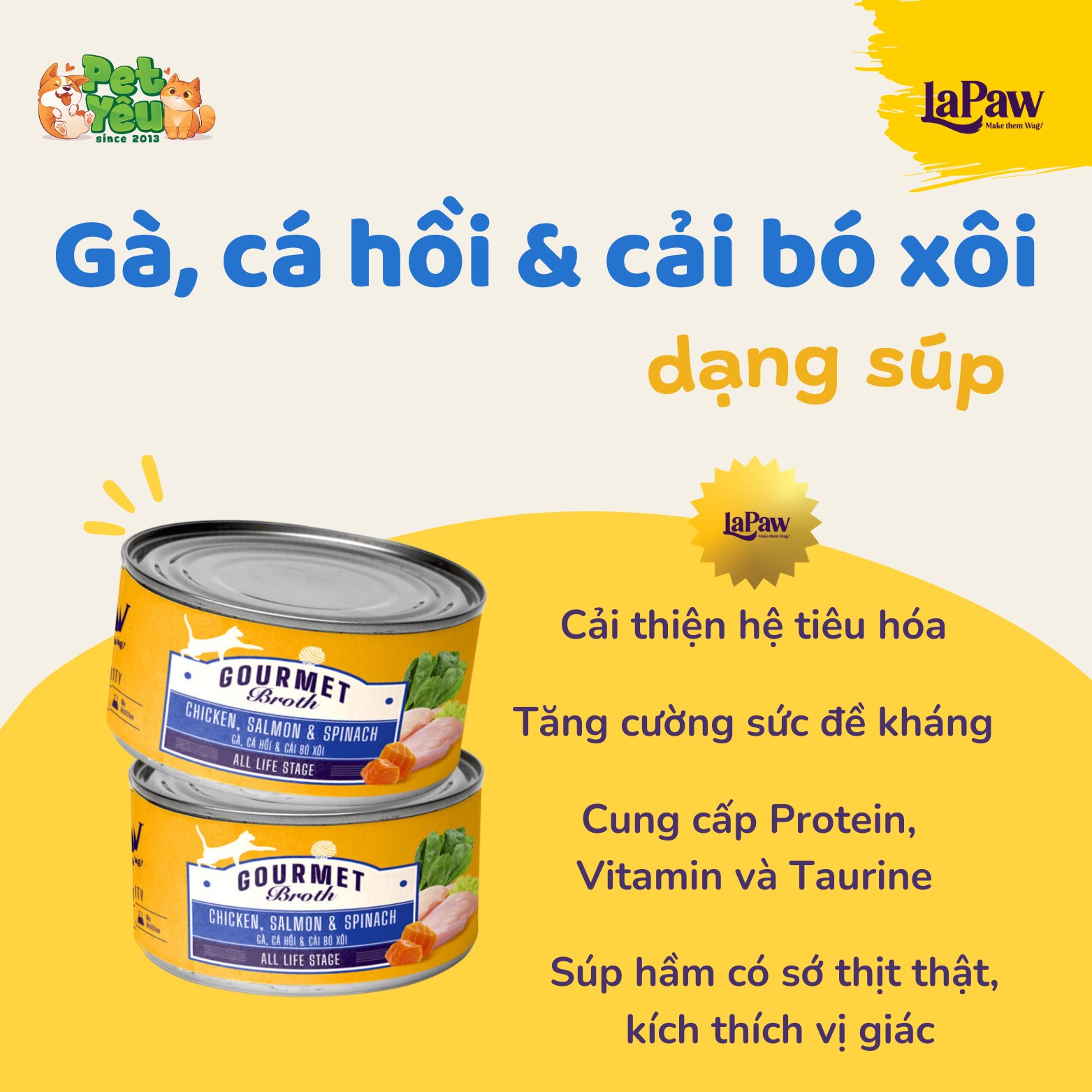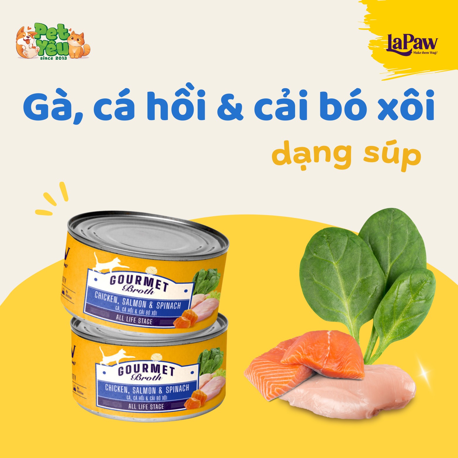 Giao hàng nhanh chóng- Pate Lapaw Gourmet dạng súp - Vị gà, cá hồi & cải bó xôi 85g