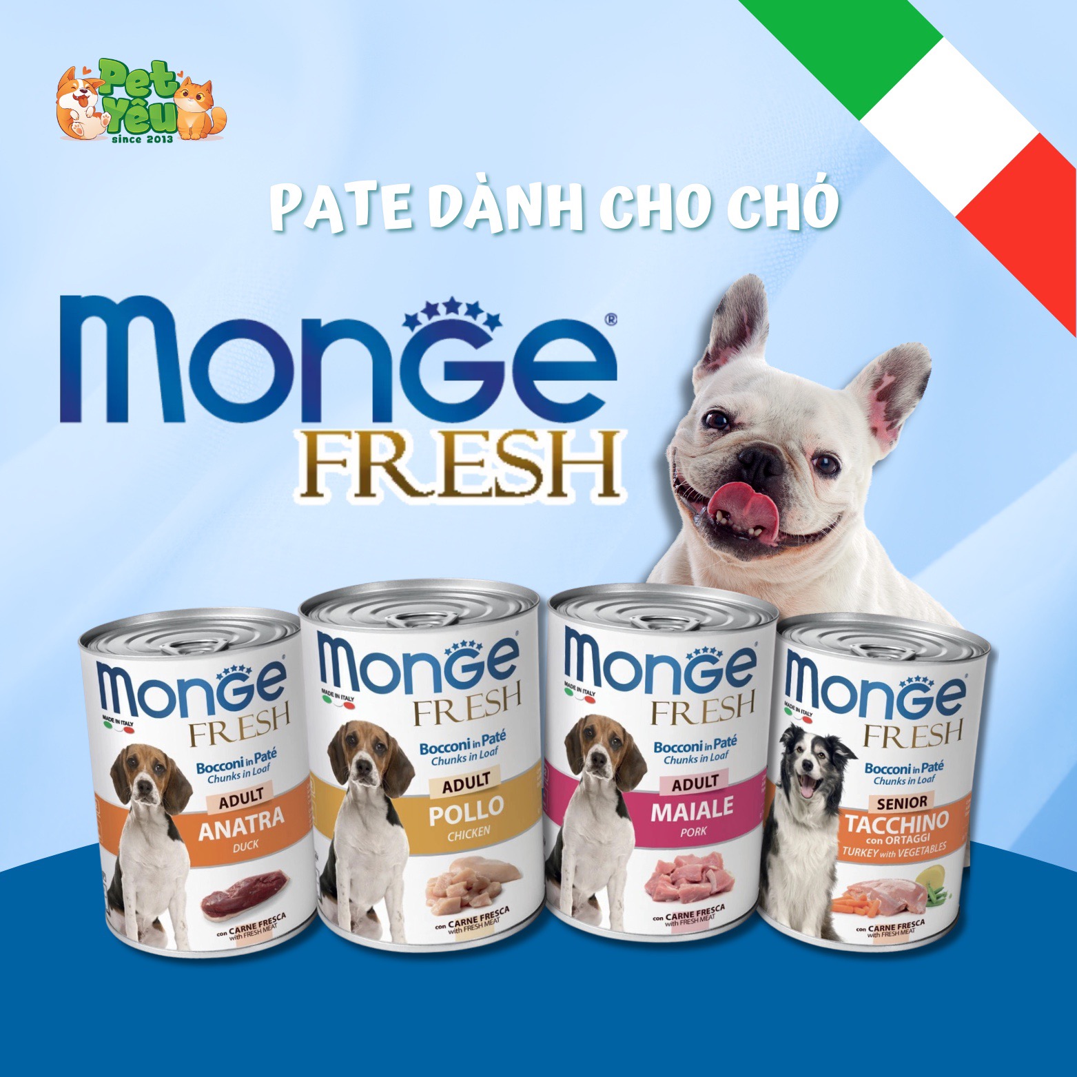 Giao hàng nhanh chóng- Pate MONGE Fresh dành cho chó lớn tuổi - Vị gà tây & rau củ lon 400g