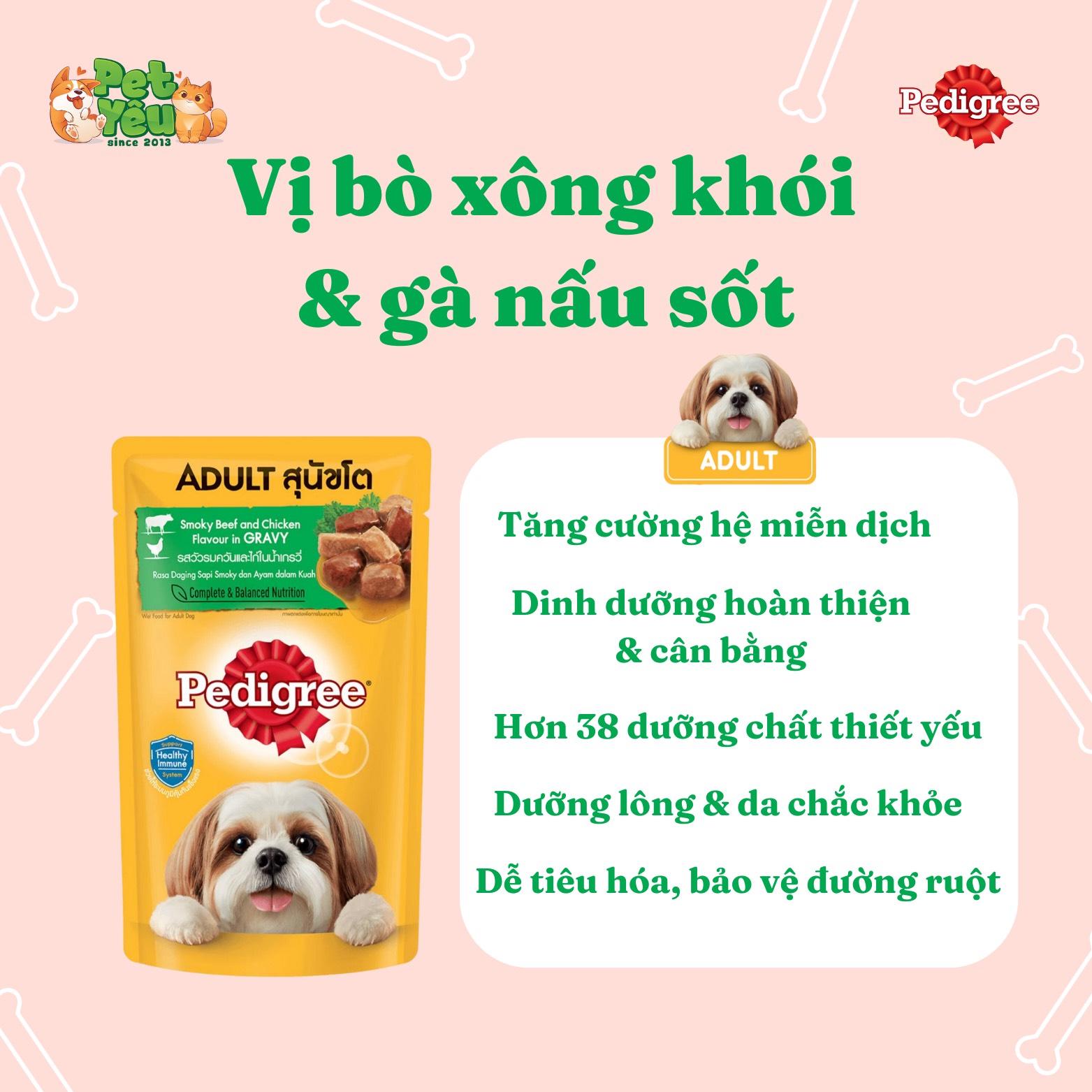 Giao hàng nhanh chóng- Pate Pedigree dành cho chó trưởng thành - Vị bò xông khói & gà nấu sốt 130g