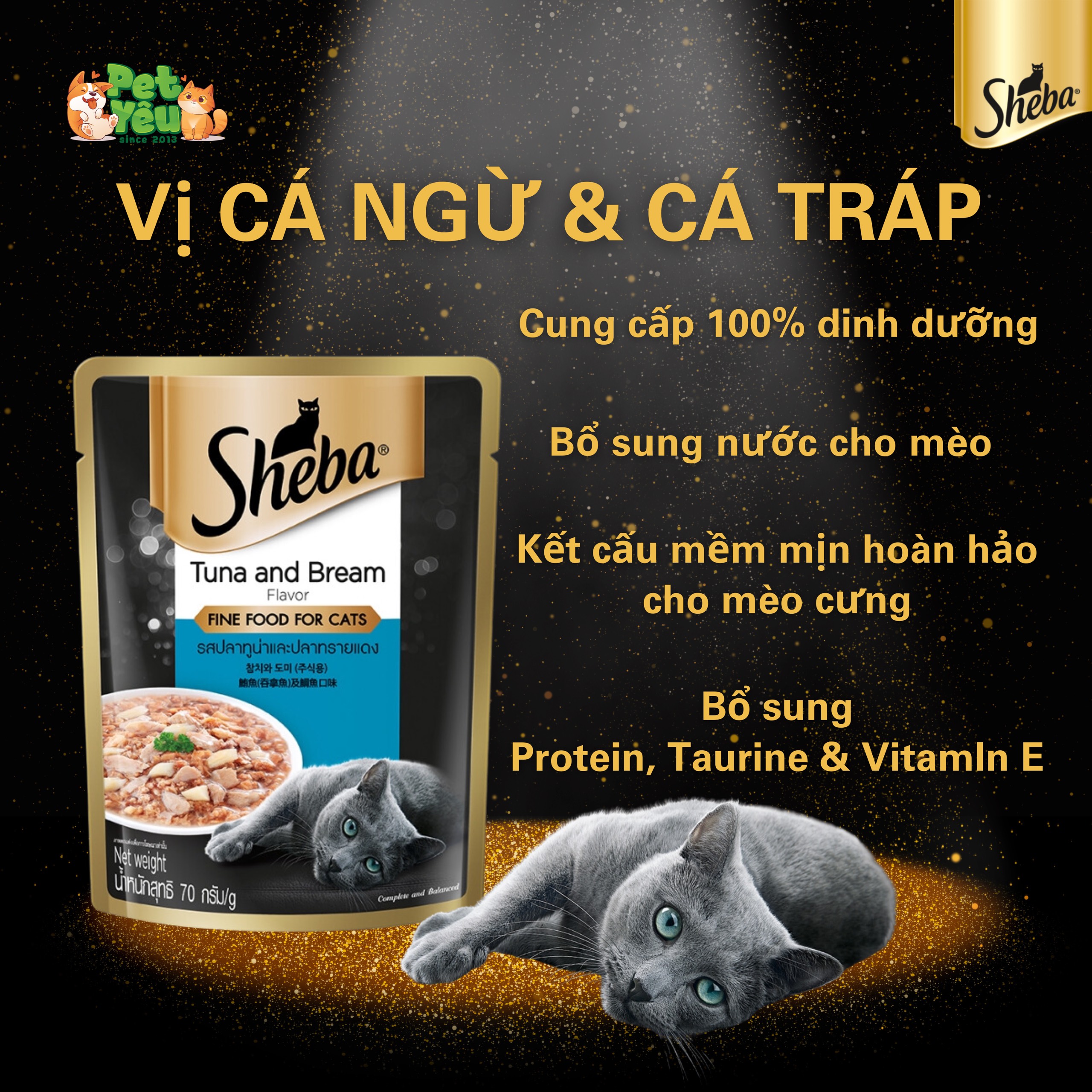 Giao hàng nhanh chóng- Pate Sheba dành cho mèo trưởng thành - Vị Cá Ngừ & Cá Tráp 70gr