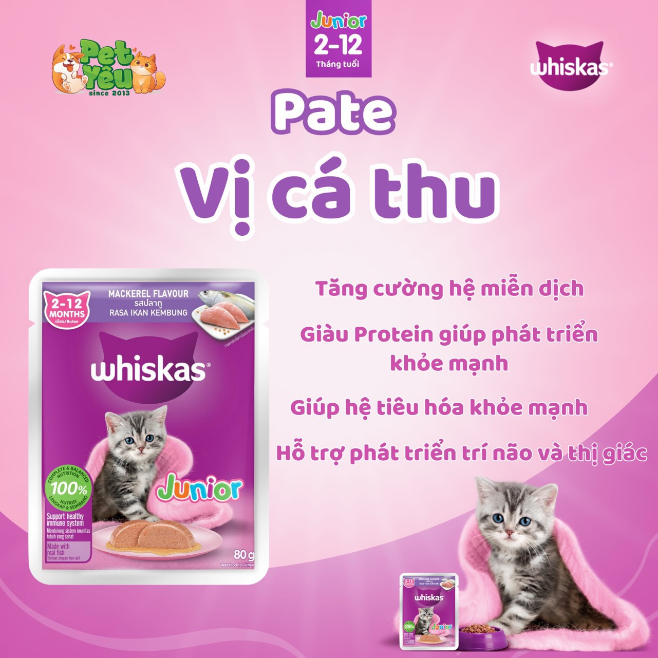 Giao hàng nhanh chóng- PATE WHISKAS dành cho mèo con - vị cá thu túi 80gr