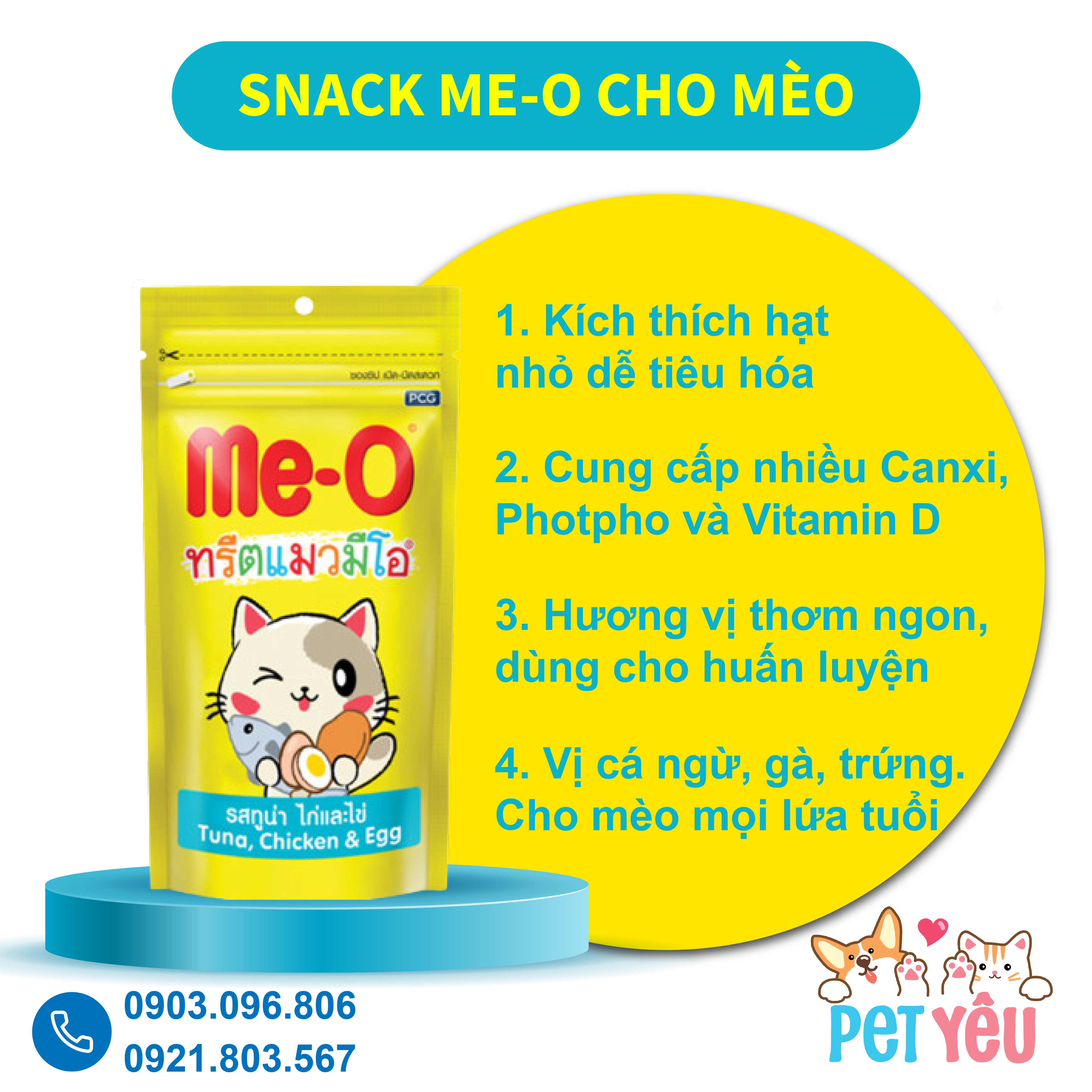 Giao hàng nhanh chóng- Snack mèo ME-O vị cá ngừ, gà , trứng gói 50gr