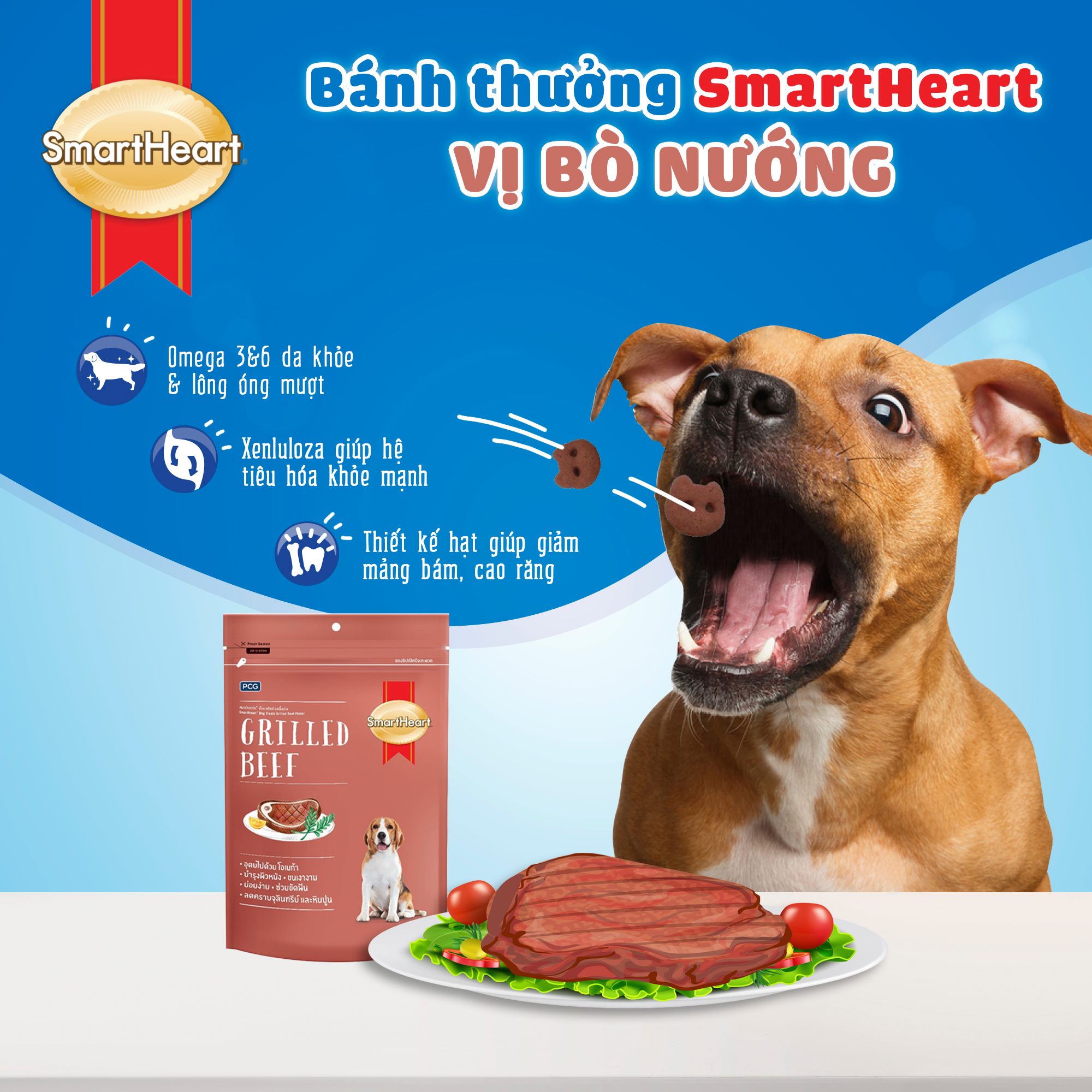 - Bánh Snack SmartHeart gói 100g tốt cho lông và da chó là sản phẩm thức ăn, bánh thưởng cho chó quen thuộc của nhiều người nuôi thú cưng.