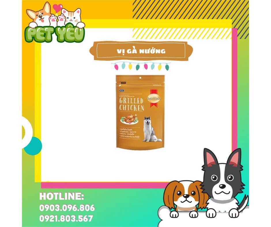 - Bánh Snack SmartHeart gói 100g tốt cho lông và da chó là sản phẩm thức ăn, bánh thưởng cho chó quen thuộc của nhiều người nuôi thú cưng.