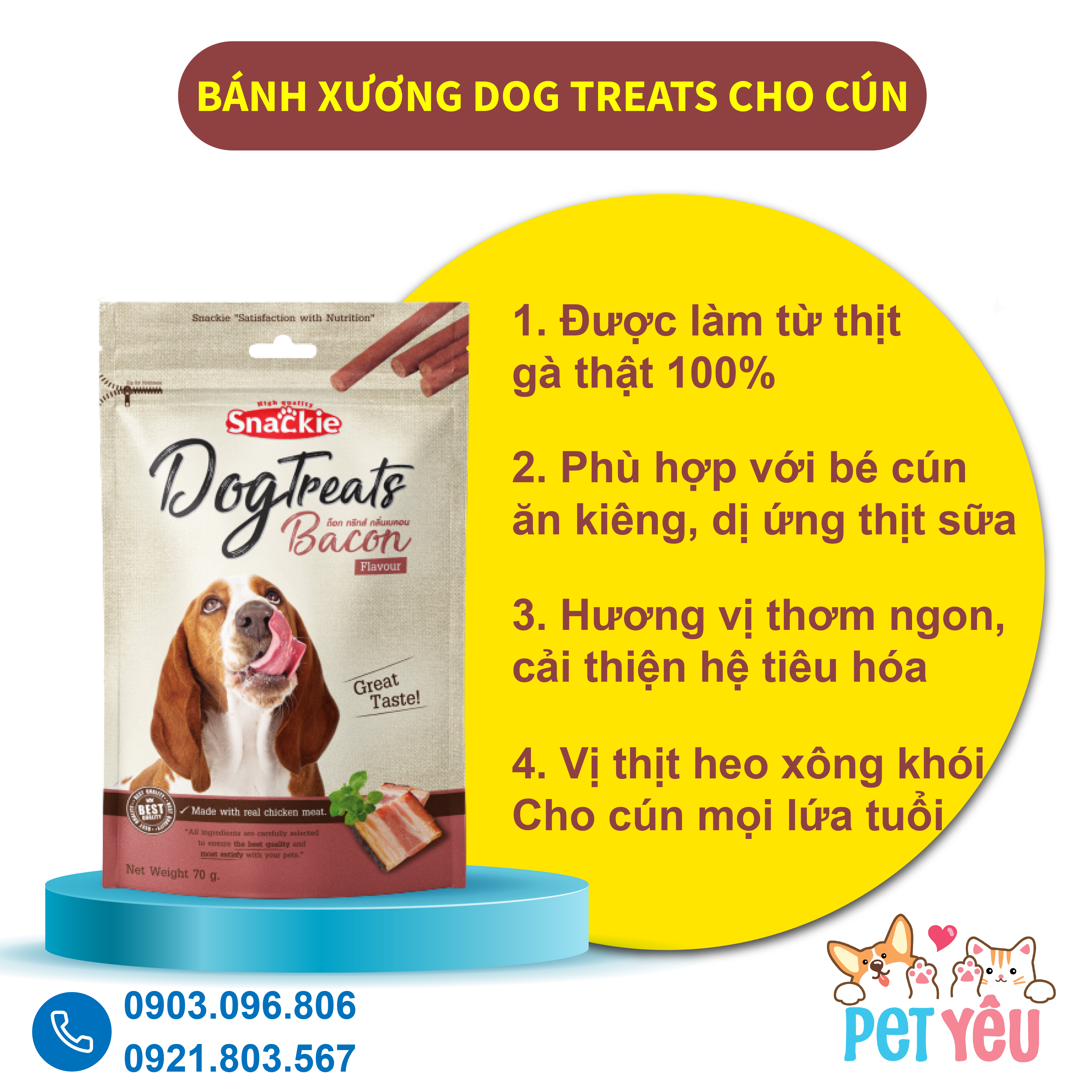 + SNACKIE mang đến hương vị thơm ngon hoàn hảo,xứng đáng là quà thưởng cho các bé chó trong lúc huấn luyện , hoặc có thể làm món ăn văt khi sen chơi cùng bé.