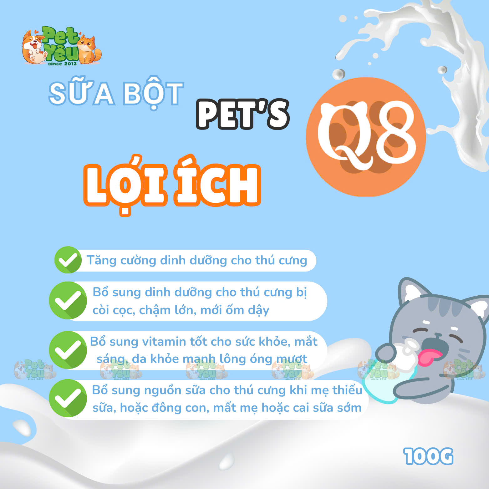 Giao hàng nhanh chóng- Sữa bột PETS Q8 dành cho thú cưng