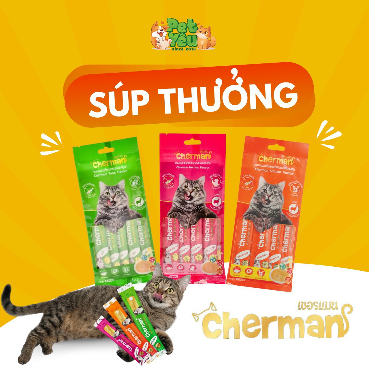 SÚP THƯỞNG CHO MÈO CHERMAN - VỊ CÁ TRÍCH & OMEGA 3
