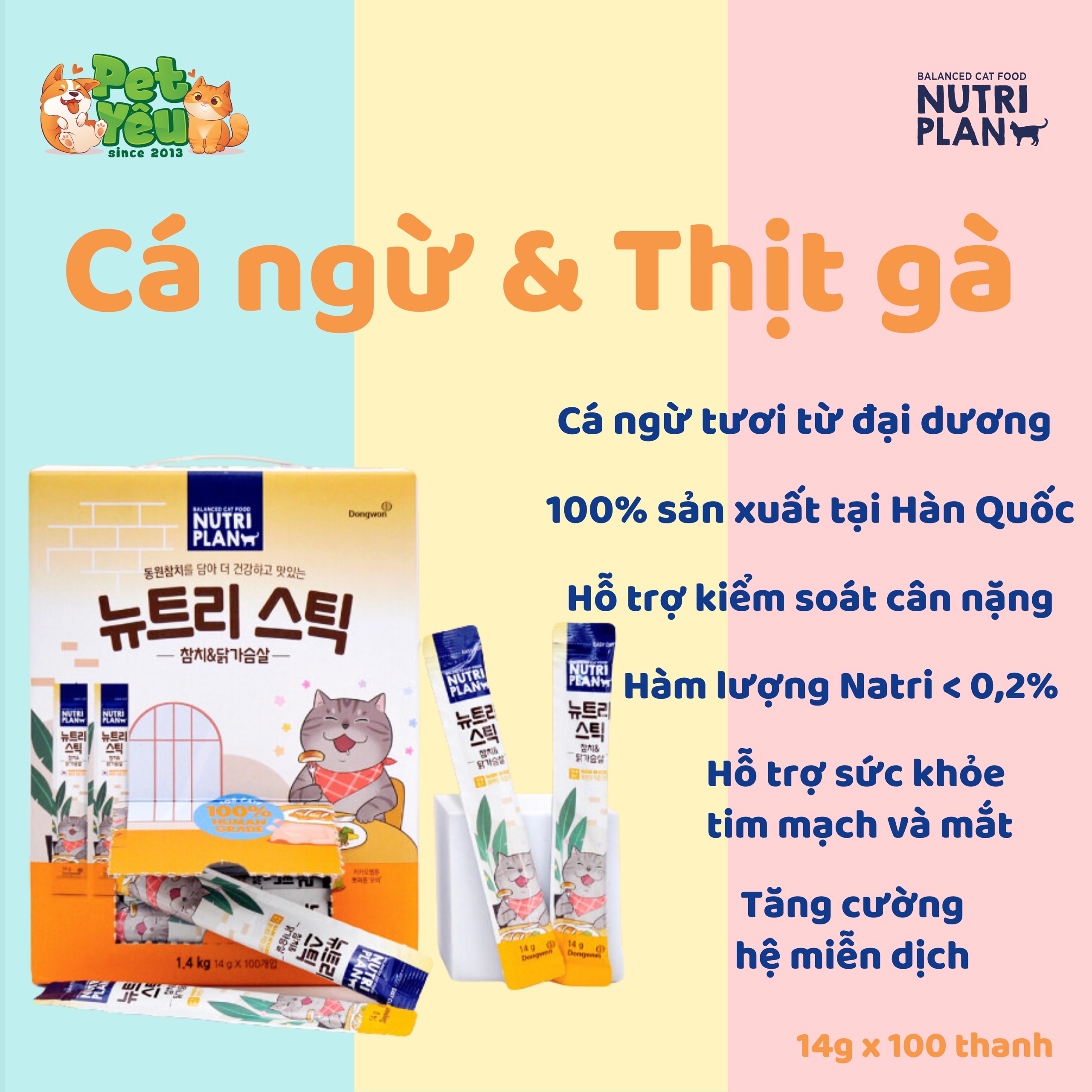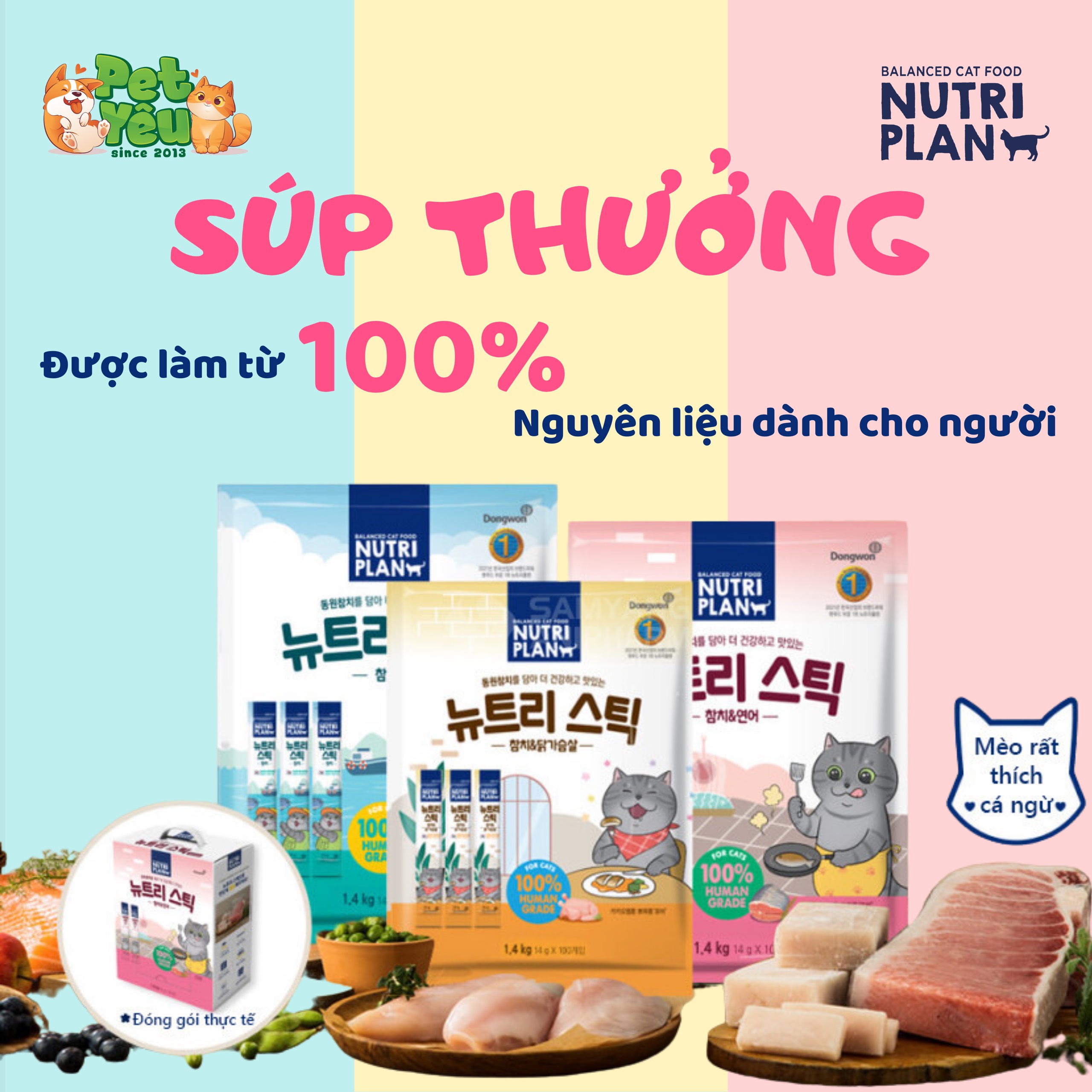 Giao hàng nhanh chóng- Súp thưởng cho mèo NUTRI PLAN - Vị Cá Ngừ & Thịt Gà (Hộp 100 que)
