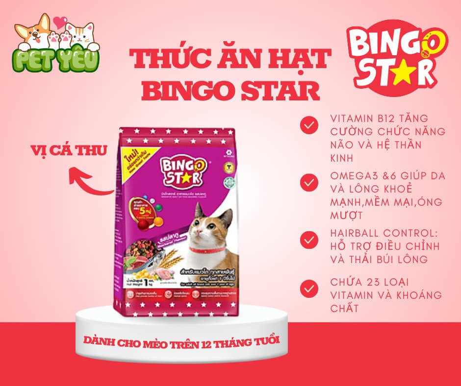 Thức ăn mèo BINGO STAR - VỊ CÁ THU Thương hiệu: Thái Lan |