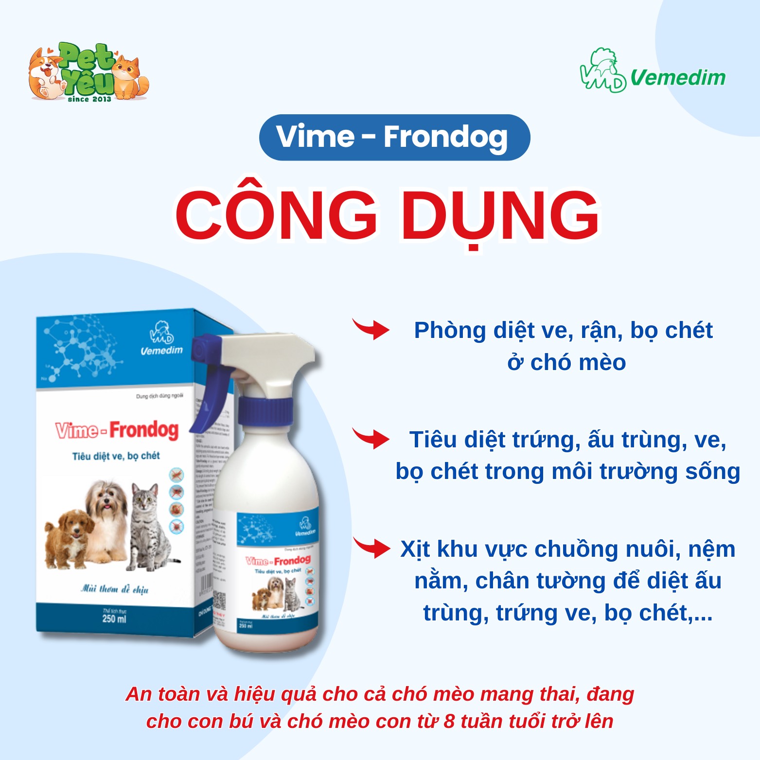 Vime - Frondog dùng cho chó & mèo trên 8 tuần tuổi trở lên và chó/ mèo mẹ đang mang thai & cho con bú.