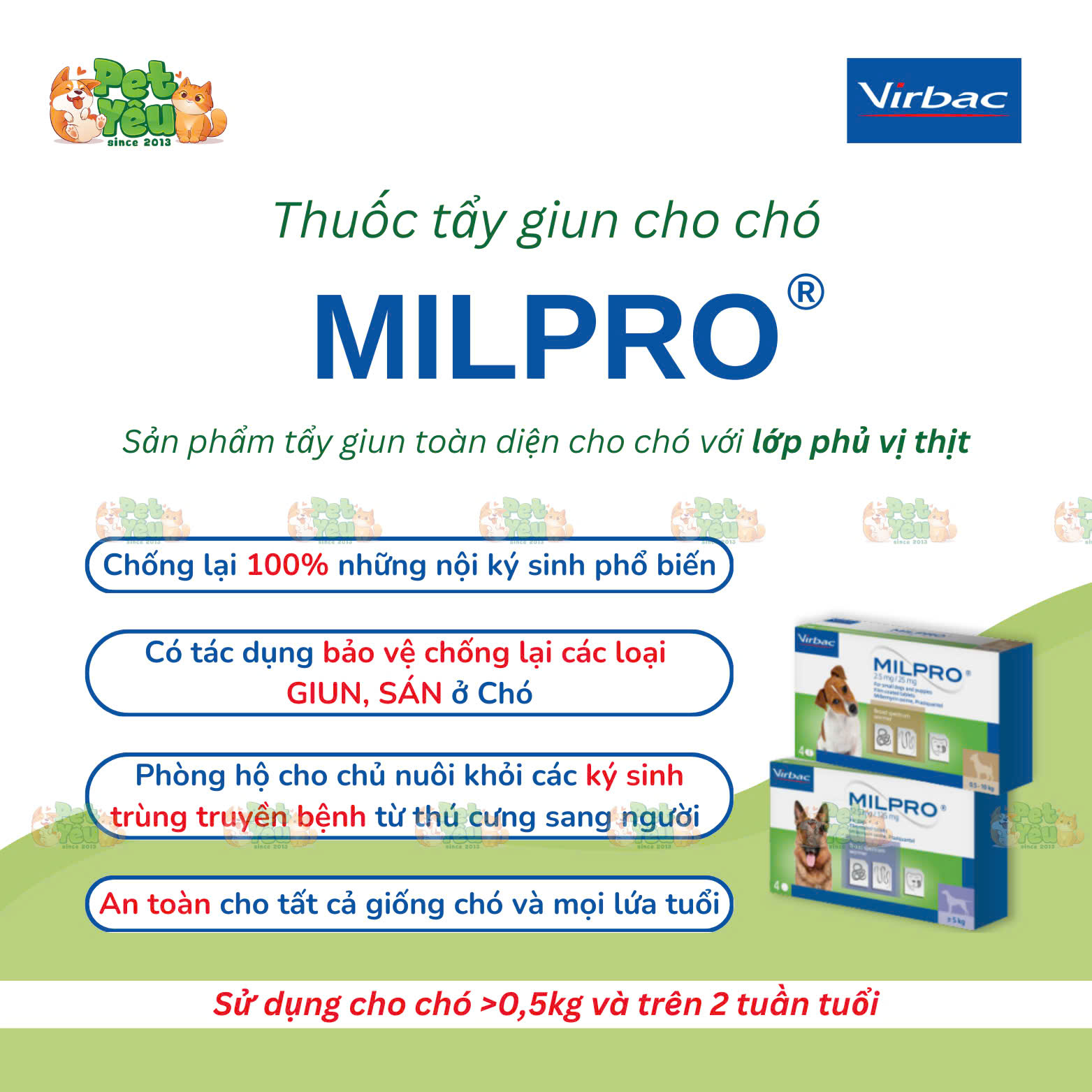 Giao hàng nhanh chóng- Thuốc xổ giun MILPRO dành cho chó