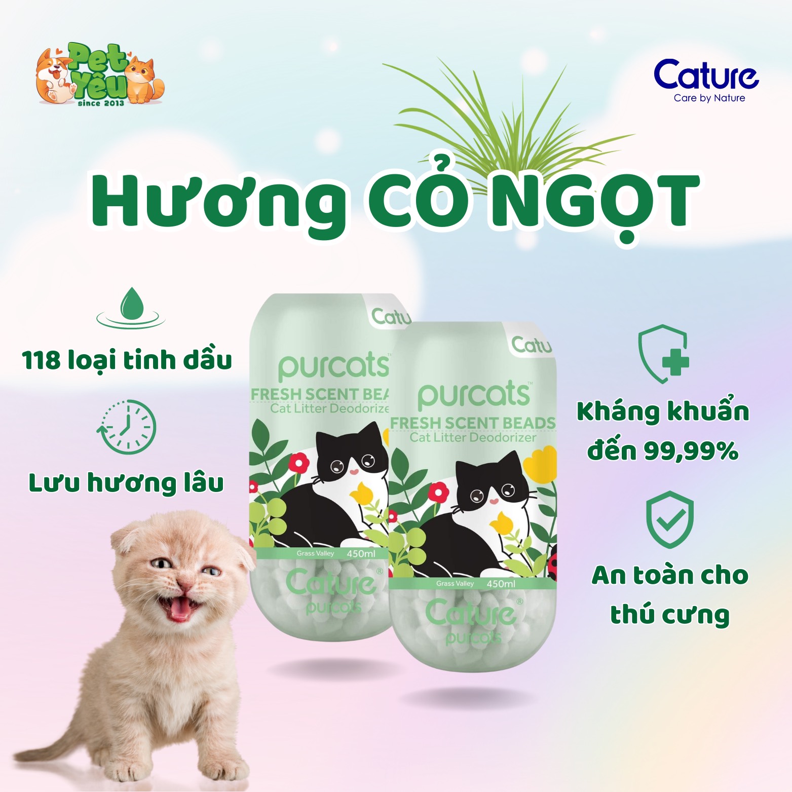 Giao hàng nhanh chóng- Viên khử mùi Cature - Hương Cỏ ngọt
