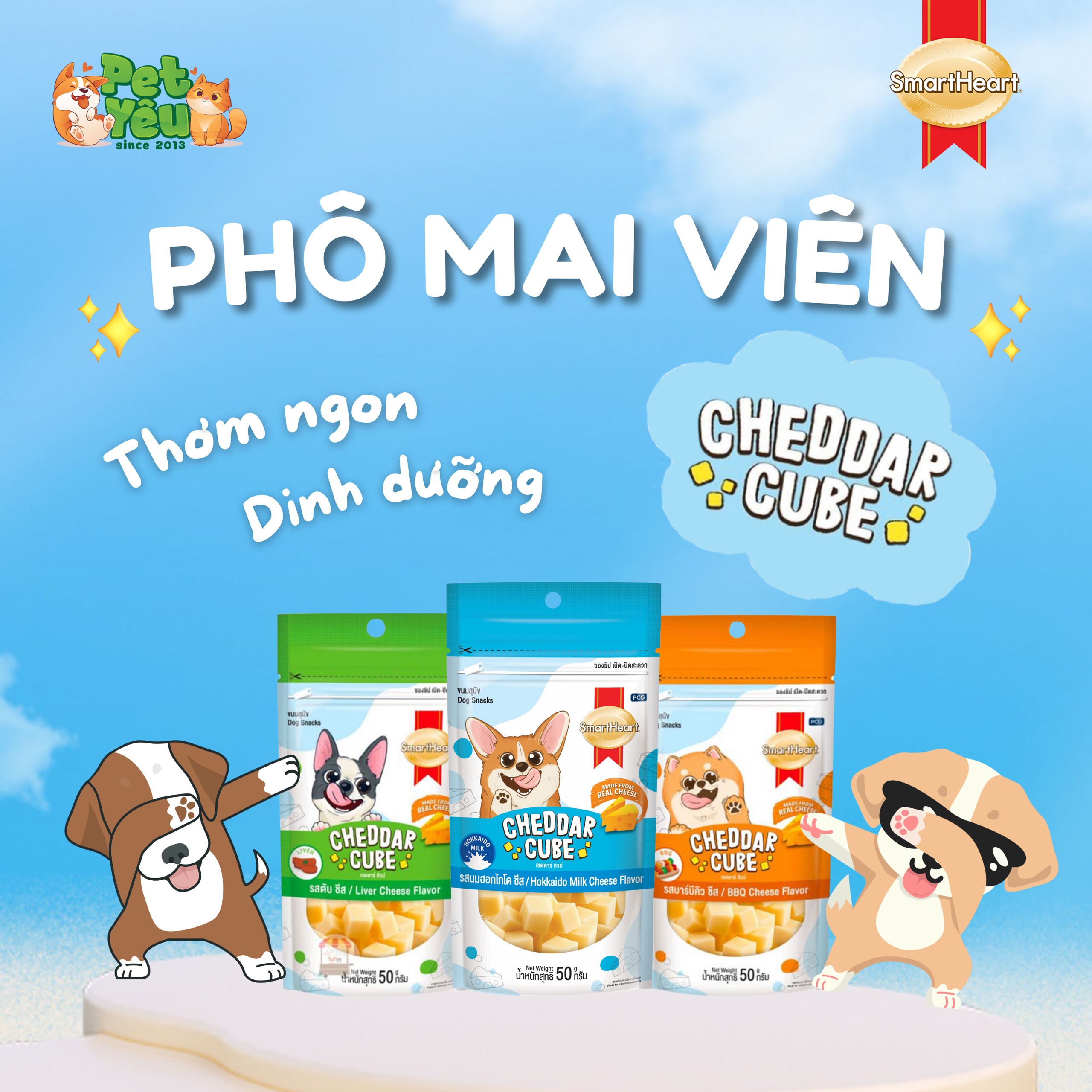 Giao hàng nhanh chóng- Viên thưởng phô mai Cheddar Cube SmartHeart dành cho cún 50gr - vị Gan