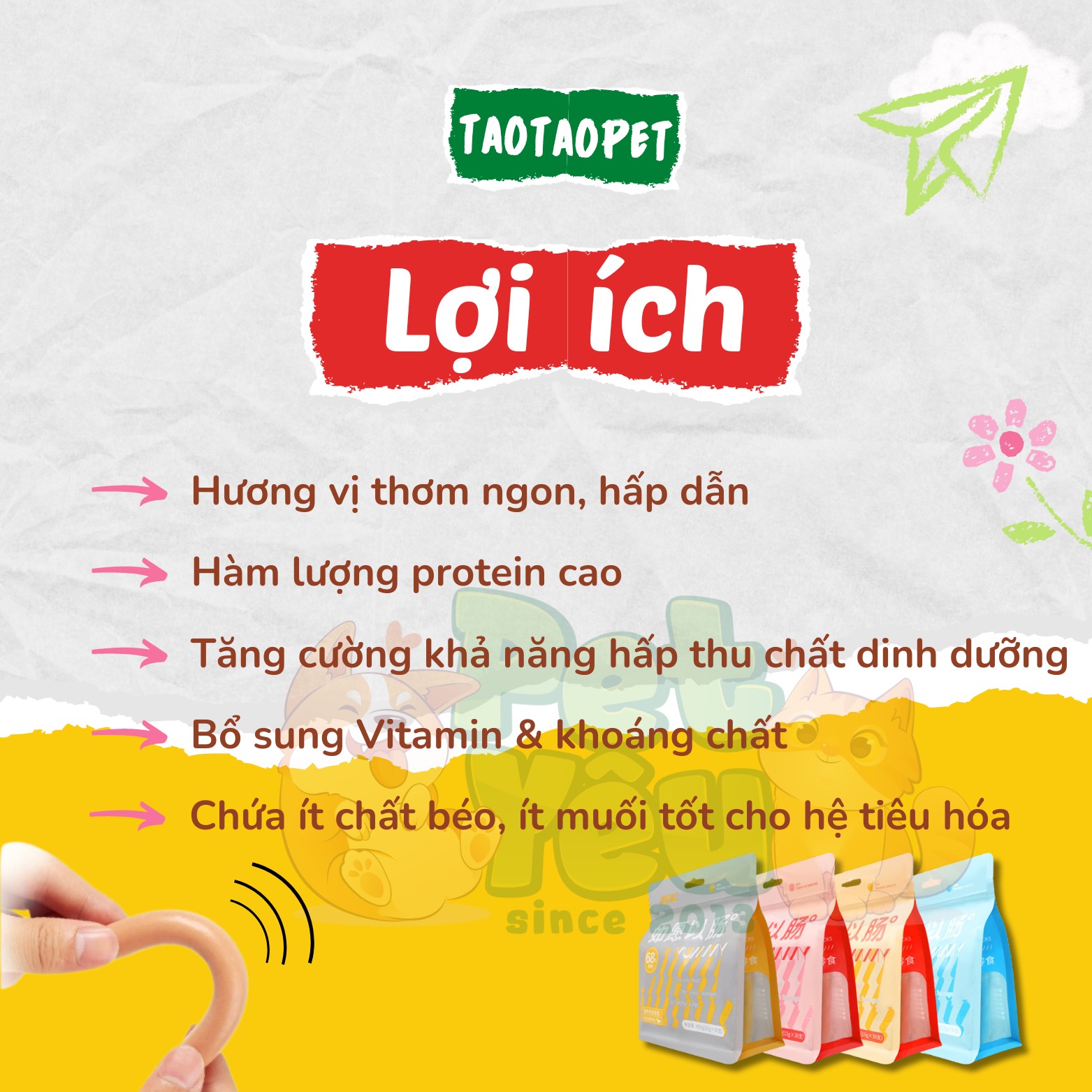 Giao hàng nhanh chóng- Xúc xích TAOTAOPET dành cho chó và mèo
